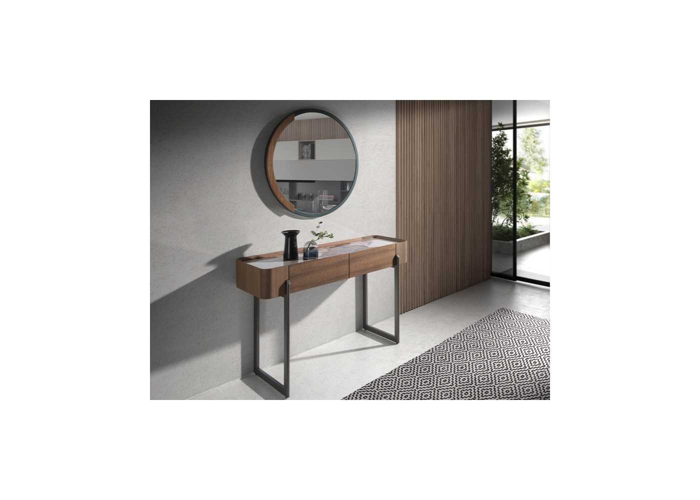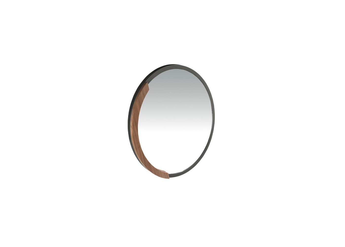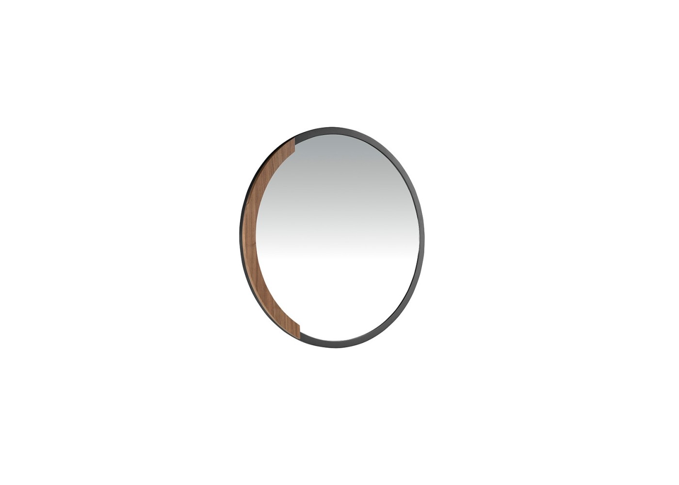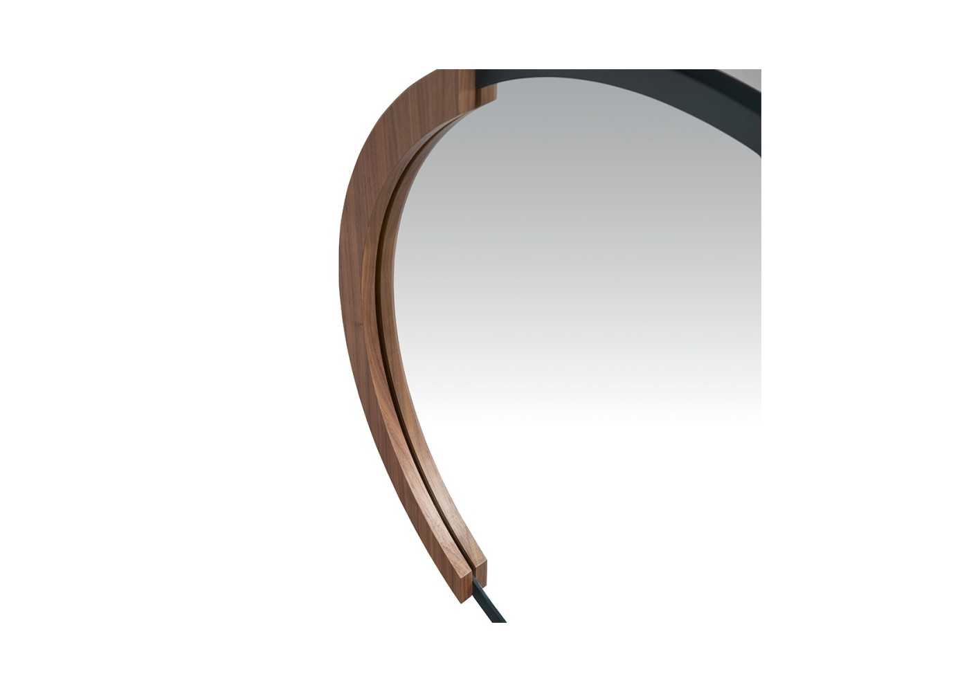 Round steel mirror with walnut detail - SYMI