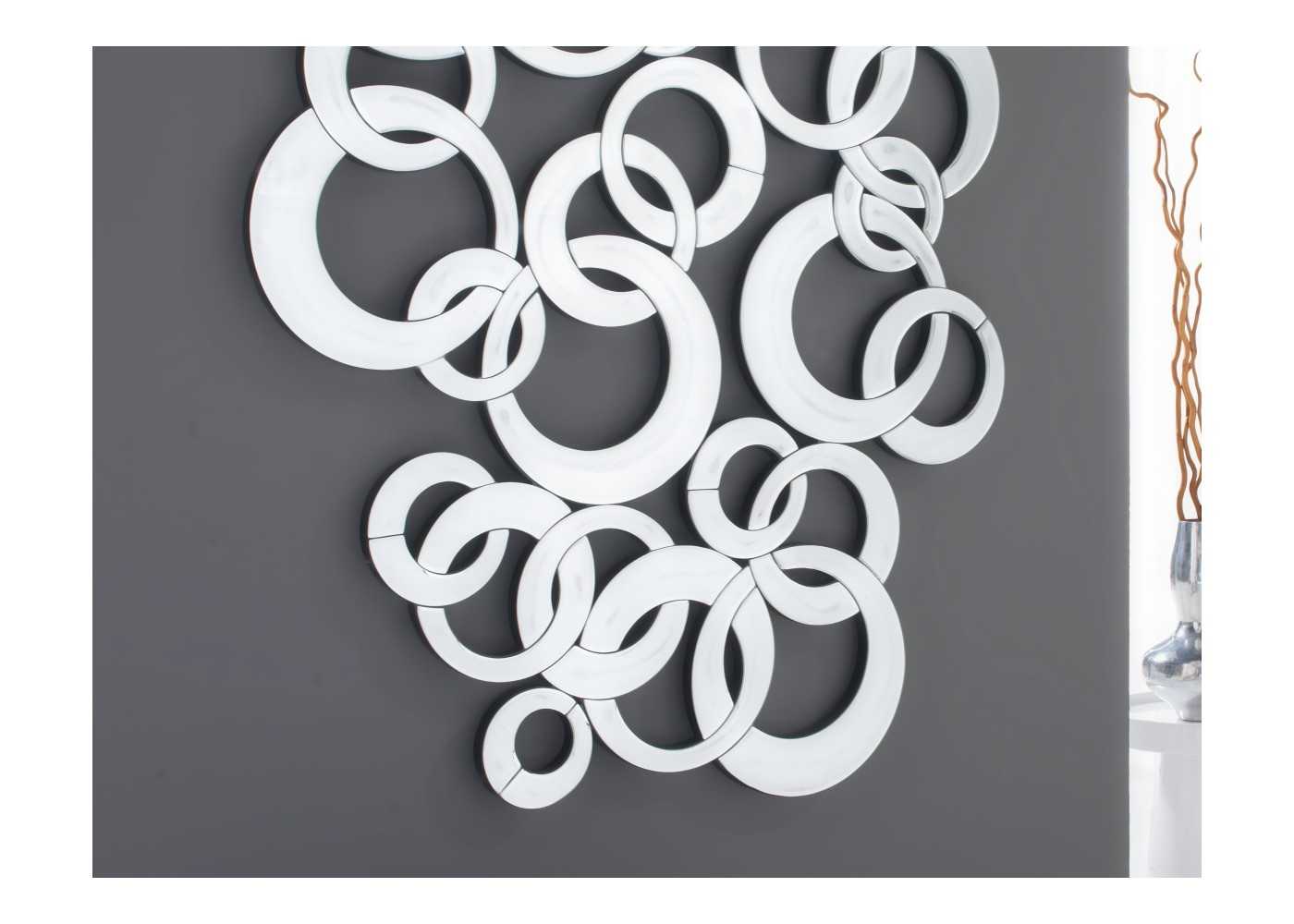 Original decorative mirror made up of interlocking mirror rings of varying sizes.