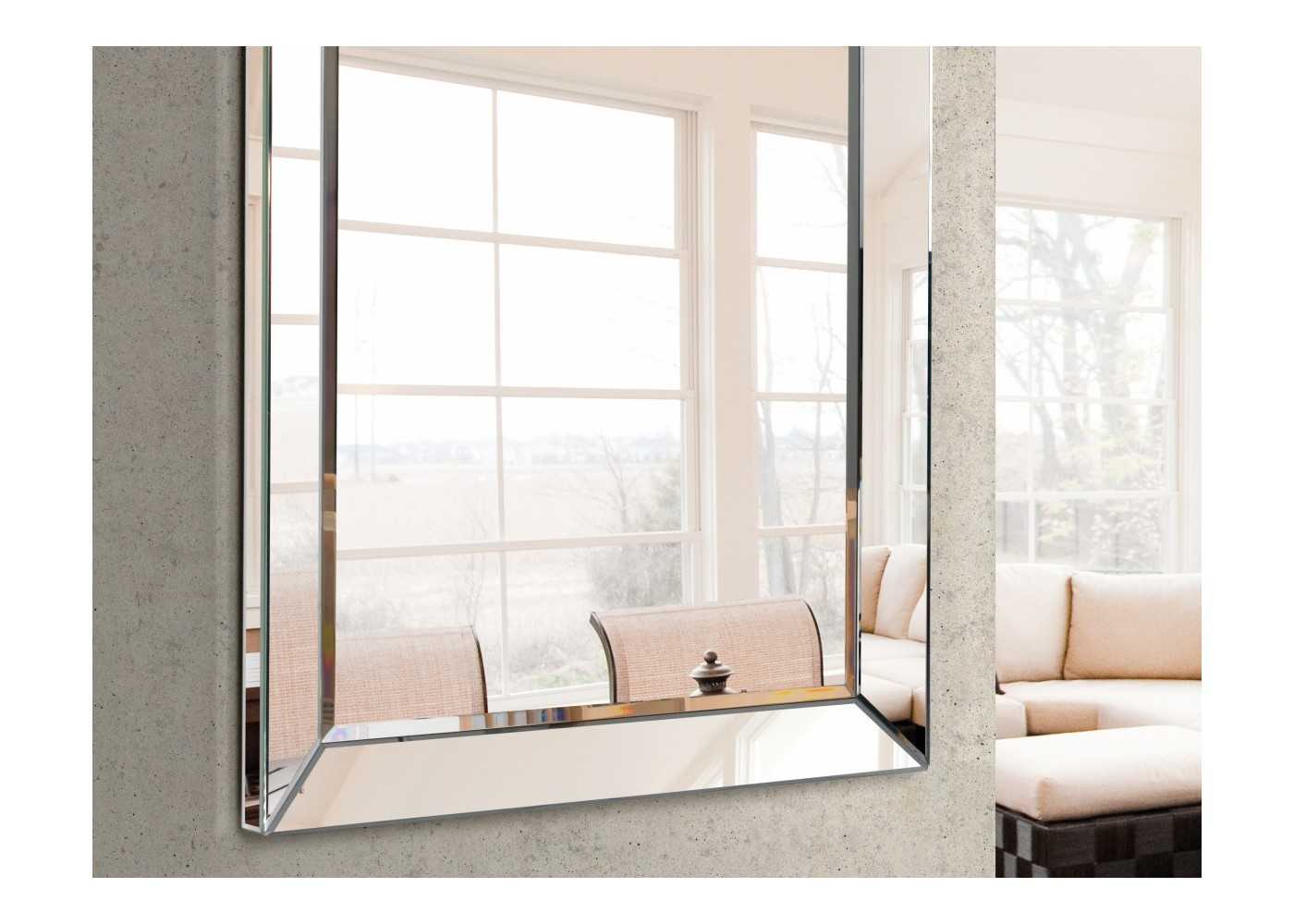 Elegant rectangular mirror with a contemporary design and a frame made of mirror.