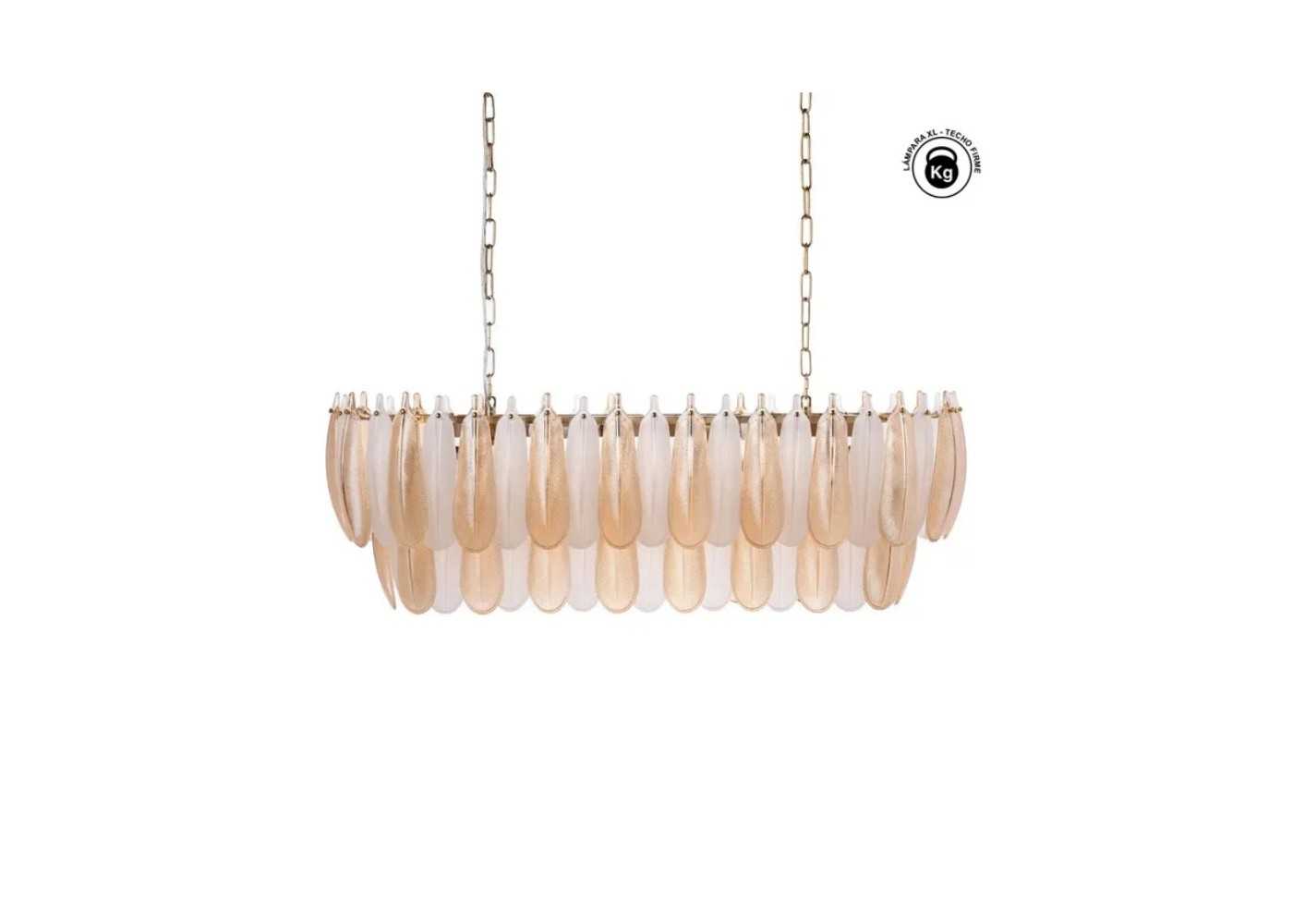 Elegant oval ceiling lamp made of champagne-colored crystal feathers.