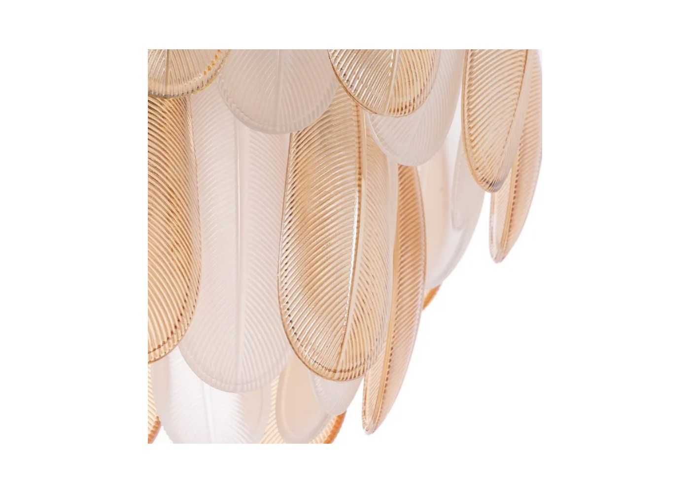 Composed of original champagne-colored crystal feathers with rounded shapes.