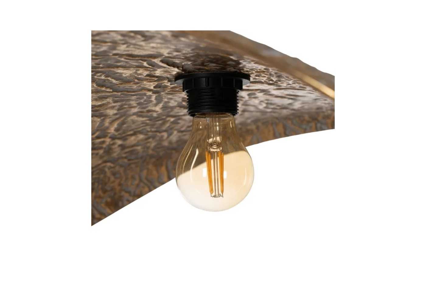 Ceiling lamp with a golden engraved metal shade.
