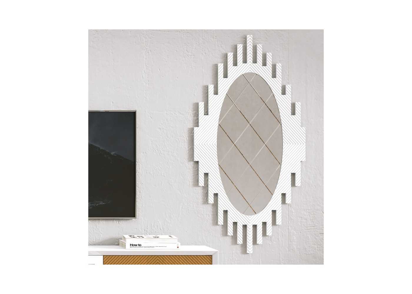 Original decorative oval mirror with an original diamond-pattern frame in a silver marbled finish and a diamond-shaped mirror with bevelled edges.