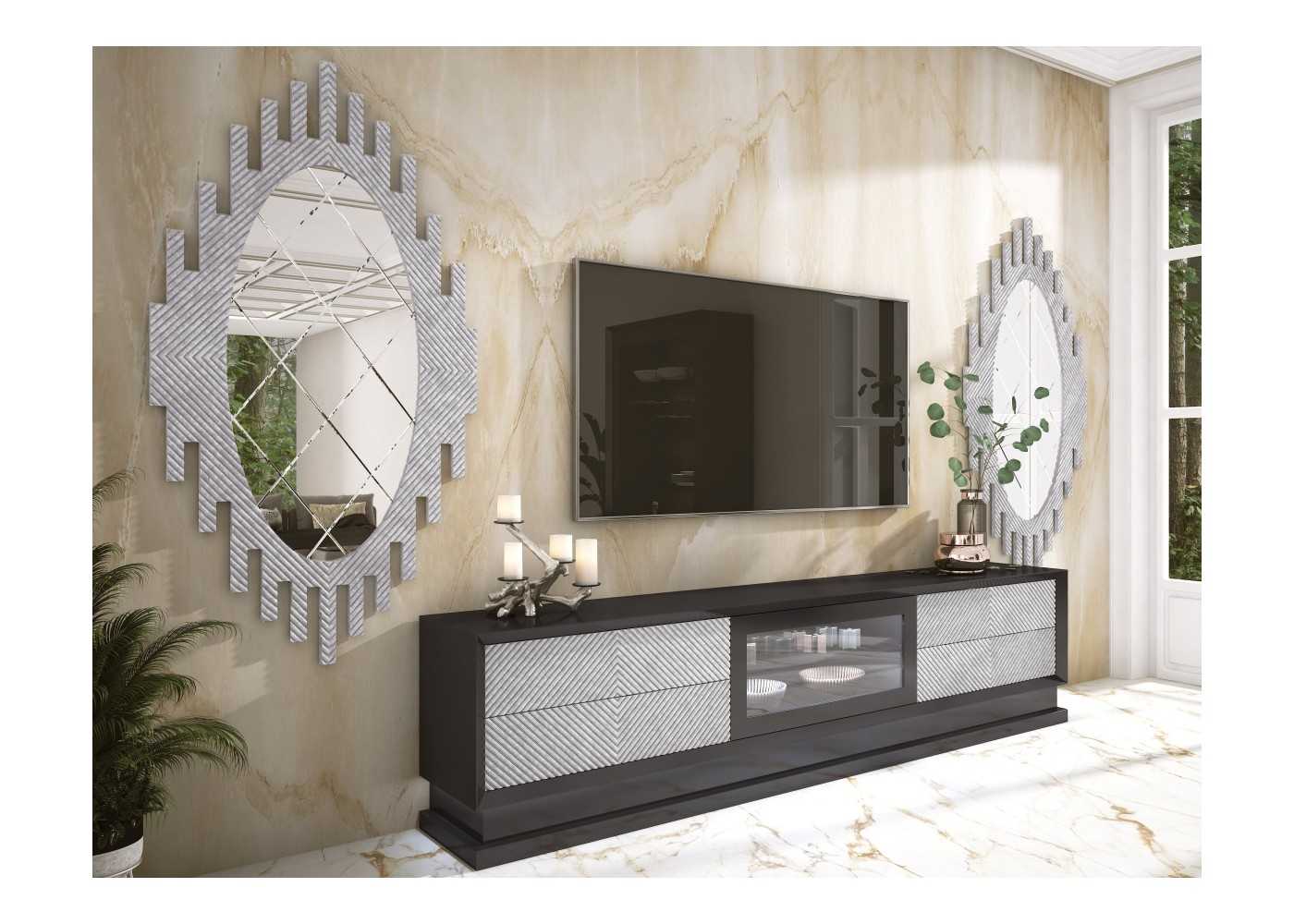 Original decorative mirror with silver marbled finish - CHÂTEAU