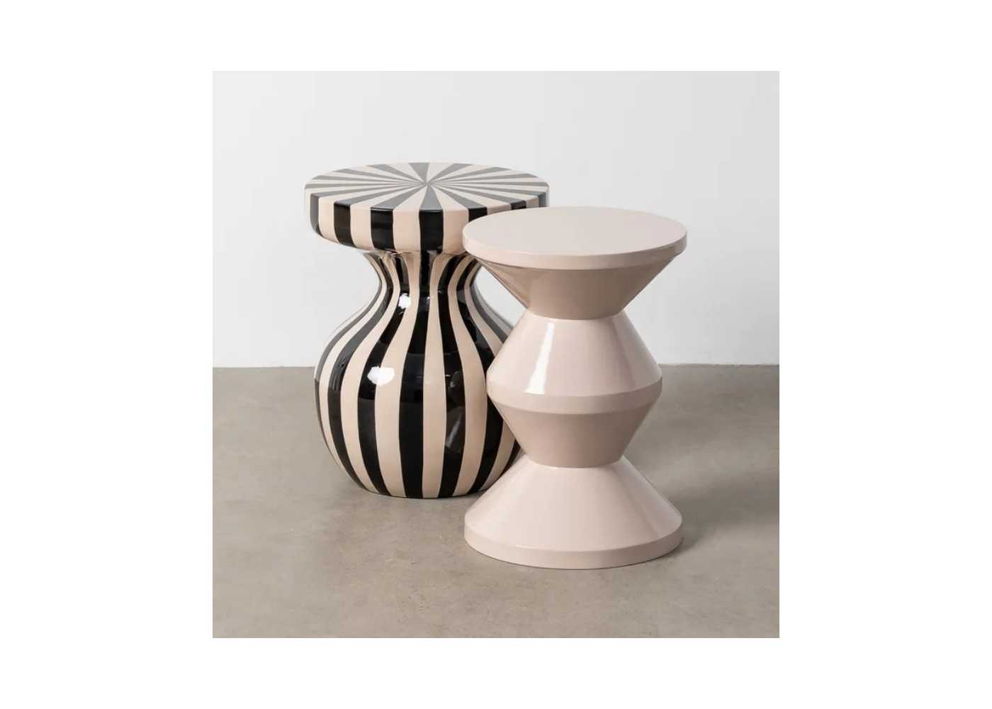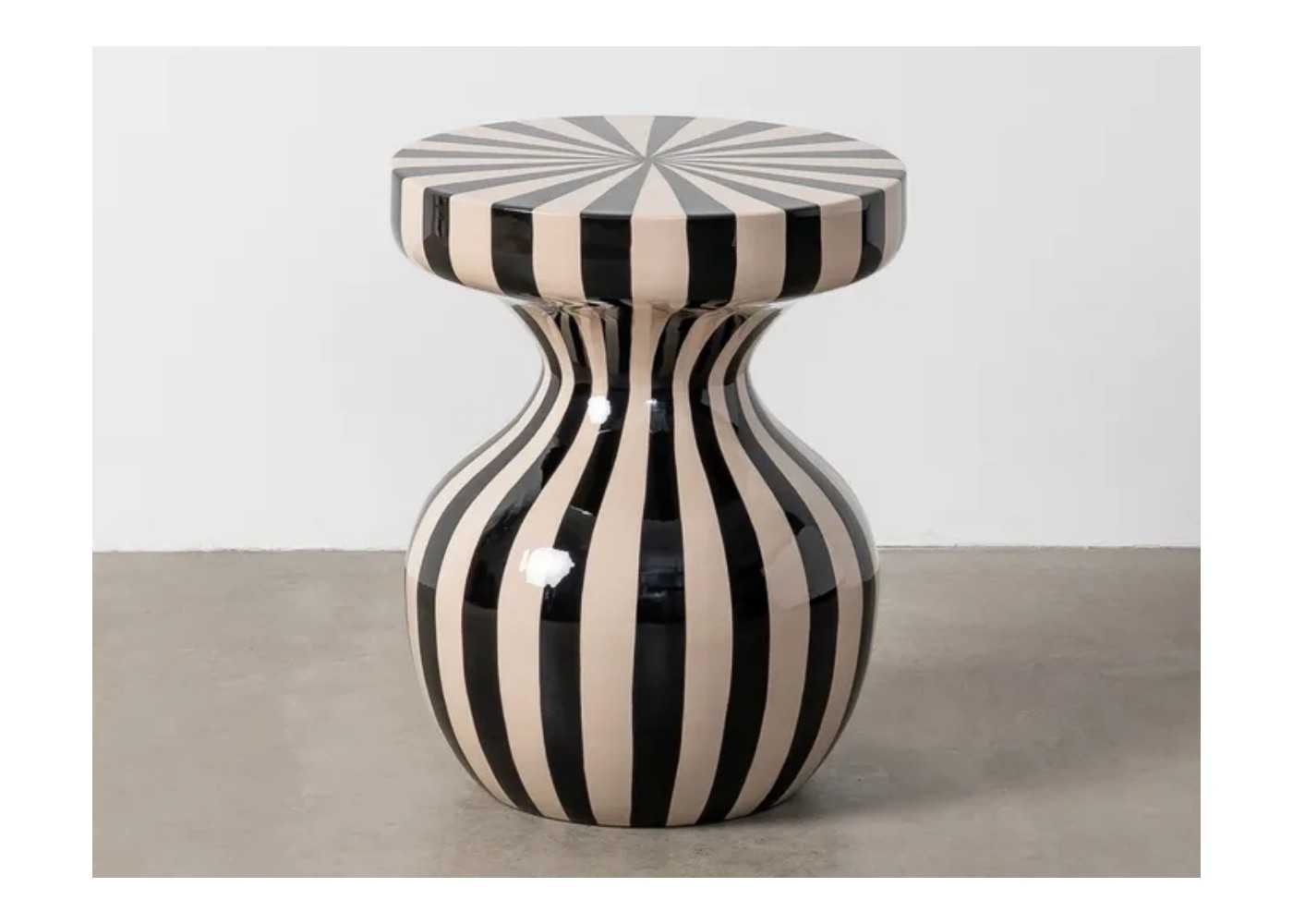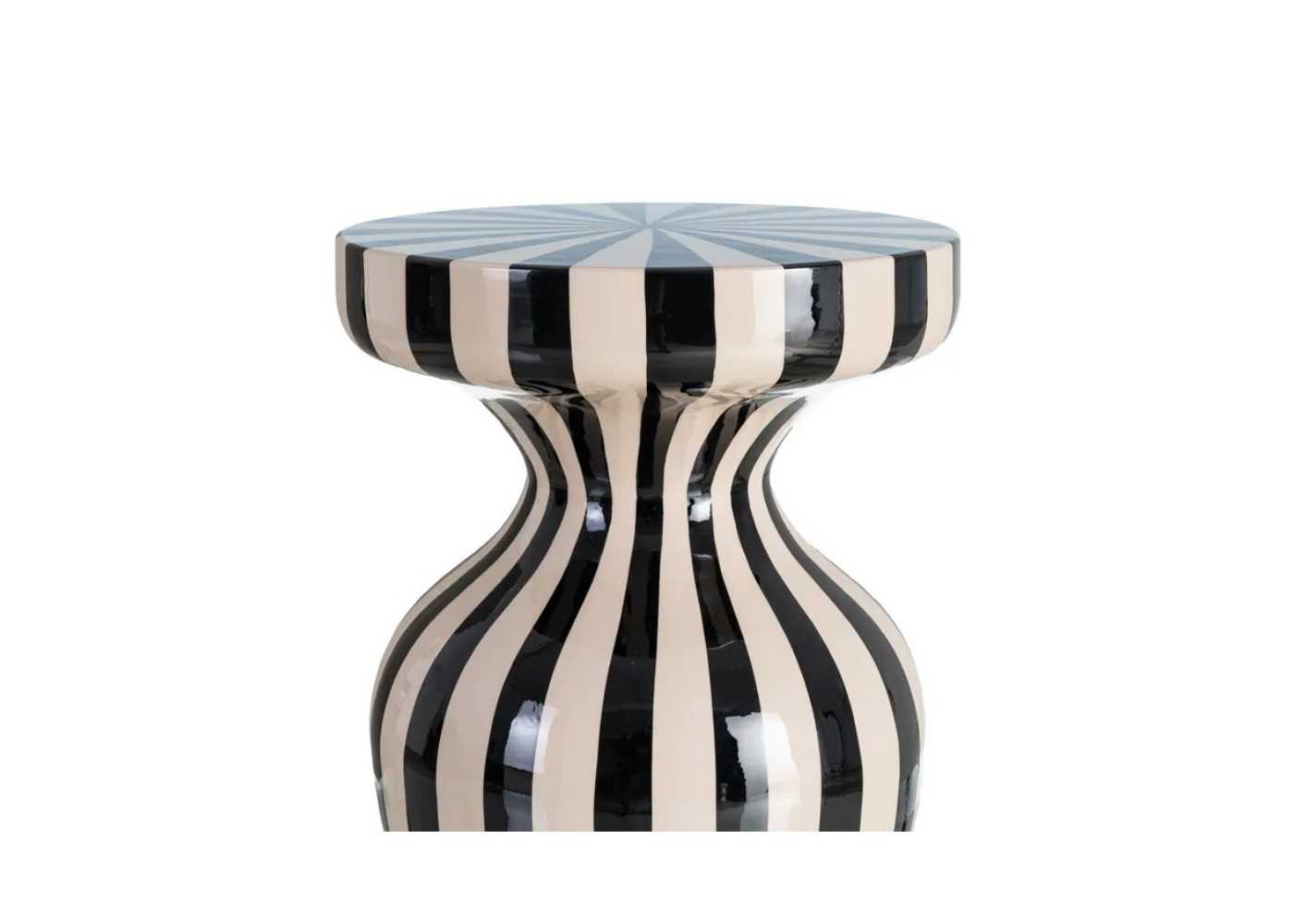 Side table with an original design, lacquered in cream and black stripes.