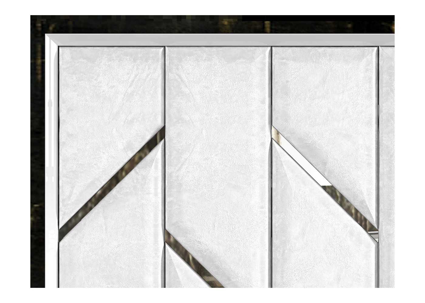 5 central panels upholstered in white PAPILLON velvet with original details of 5 mm thick, 25 mm wide mirror-effect methacrylate sheets.