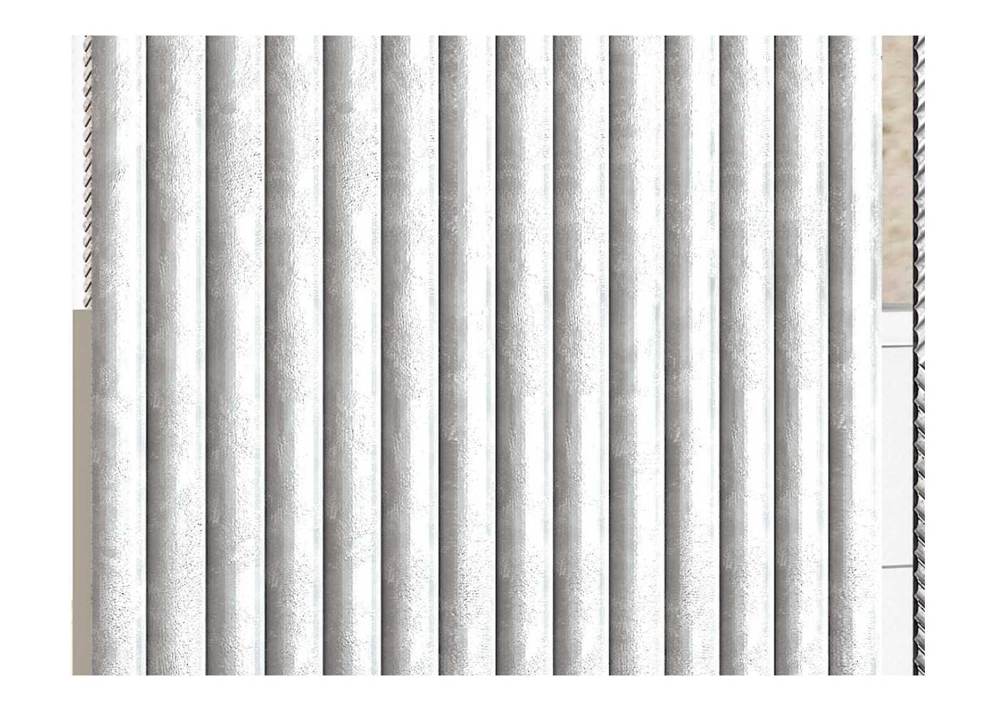 Central panel composed of 14 rollers upholstered in white PAPILLON velvet, framed with original details of 5 mm thick and 25 mm wide mirror-effect methacrylate sheets and