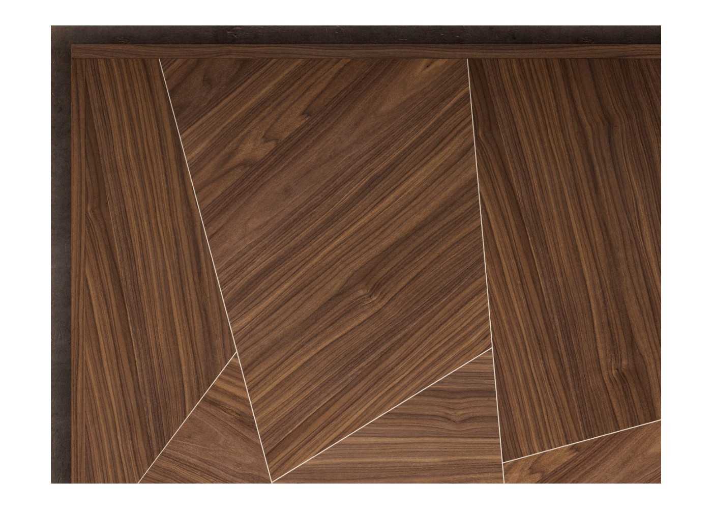The upper part of the headboard is made of American walnut marquetry wood with a variable height of 150 cm.