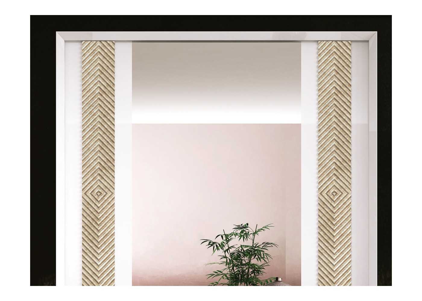 Lacquered back with 9 cm mitered molding and side details in a diamond-pattern engraving in champagne marble, with the option of silver marble at no extra cost.