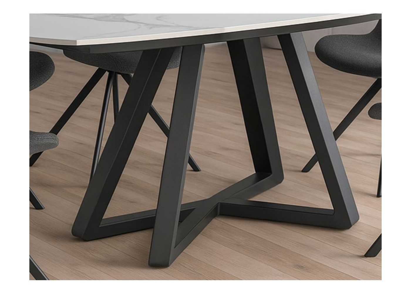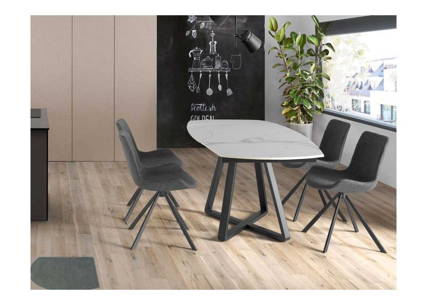 Extendable dining table with porcelain marble top and stainless steel base - MOSSET