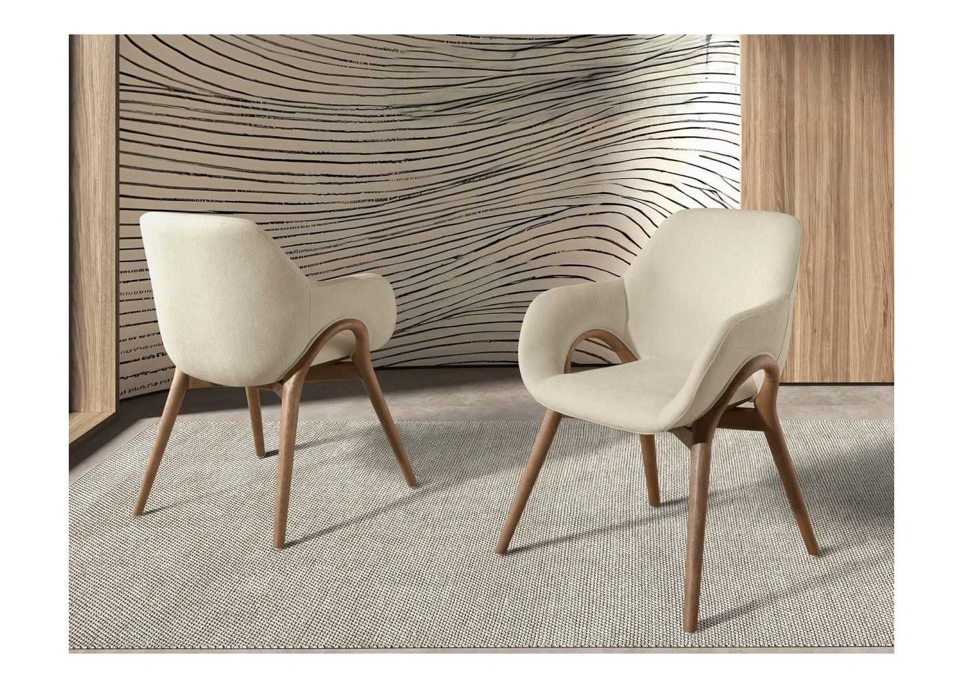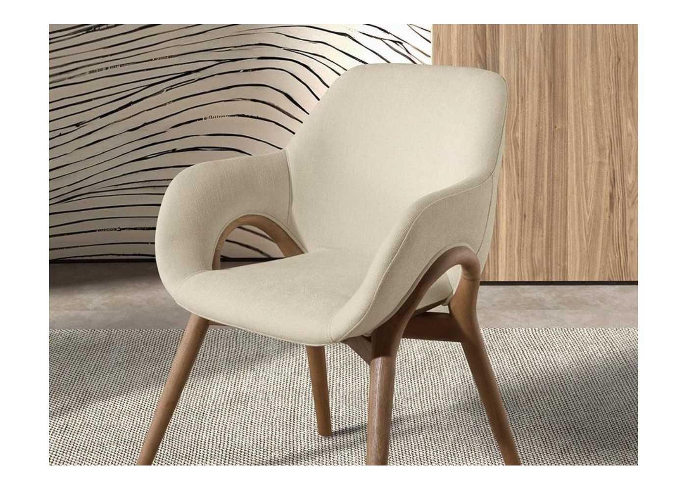 Designer chair upholstered in fabric with solid wood frame - ABBA