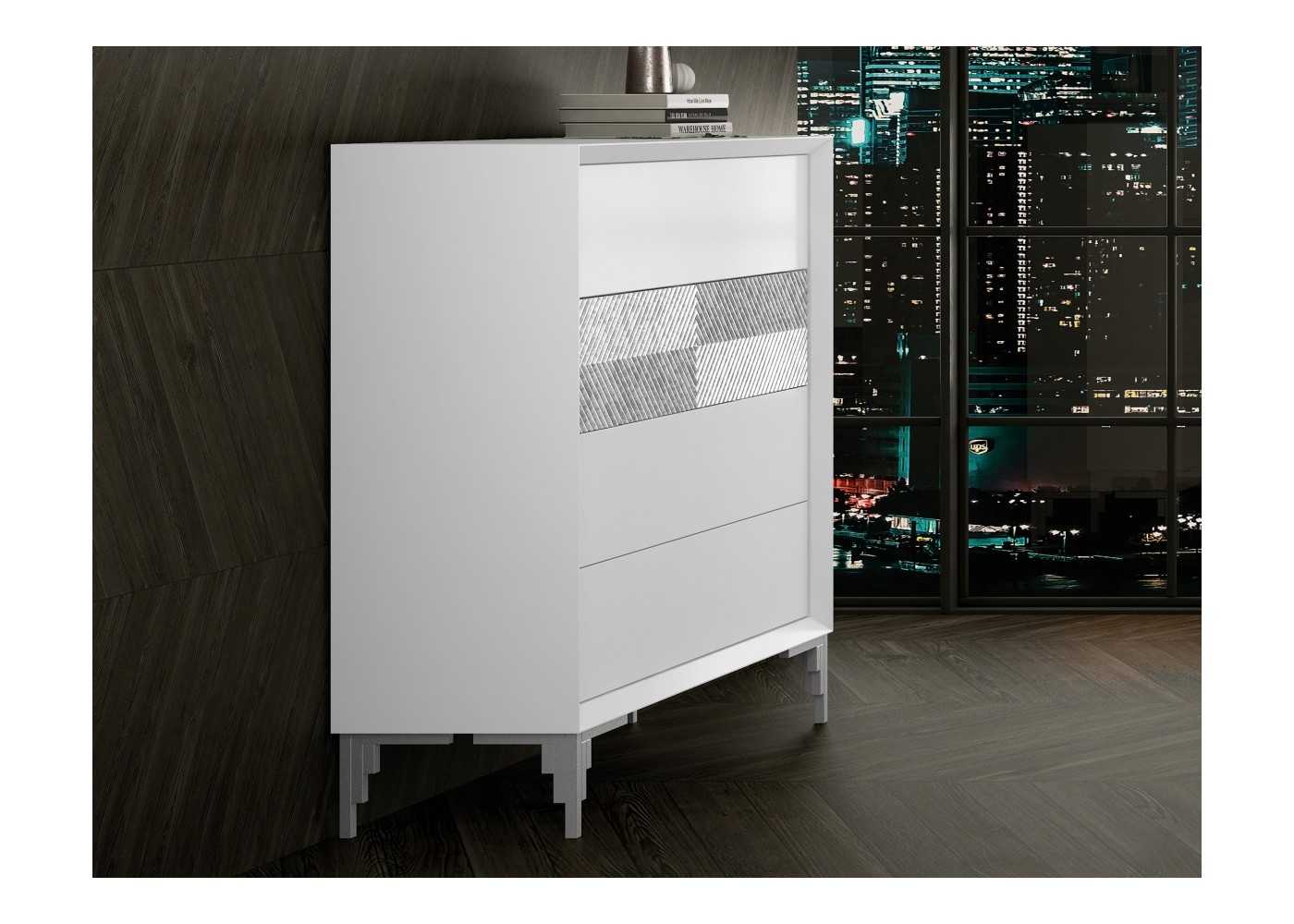 Chest of drawers with 4 drawers, modern design and straight lines with plinth.