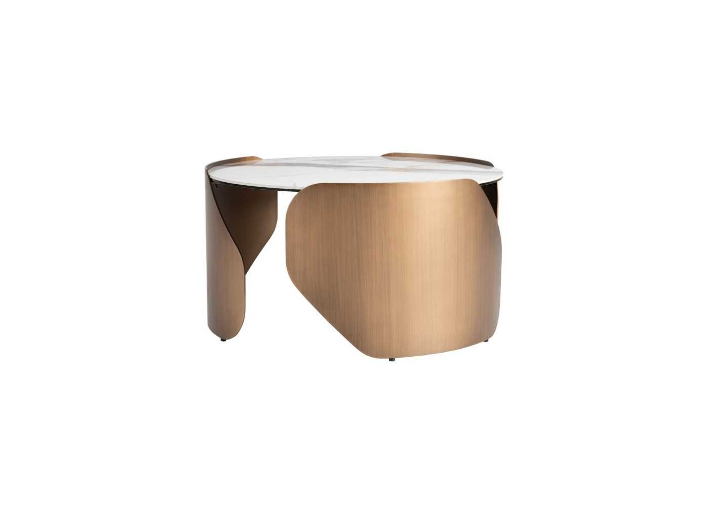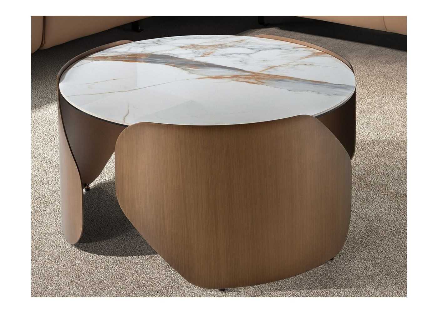Round table with fixed porcelain marble top and stainless steel base - ABACO ROND