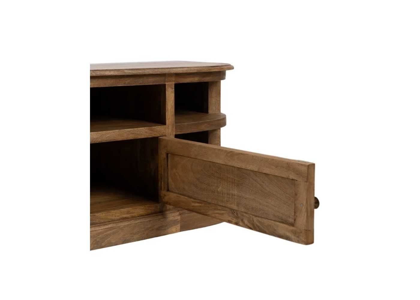 Practical and functional TV stand in a rustic/Mediterranean style, crafted from mango wood with a natural finish.
