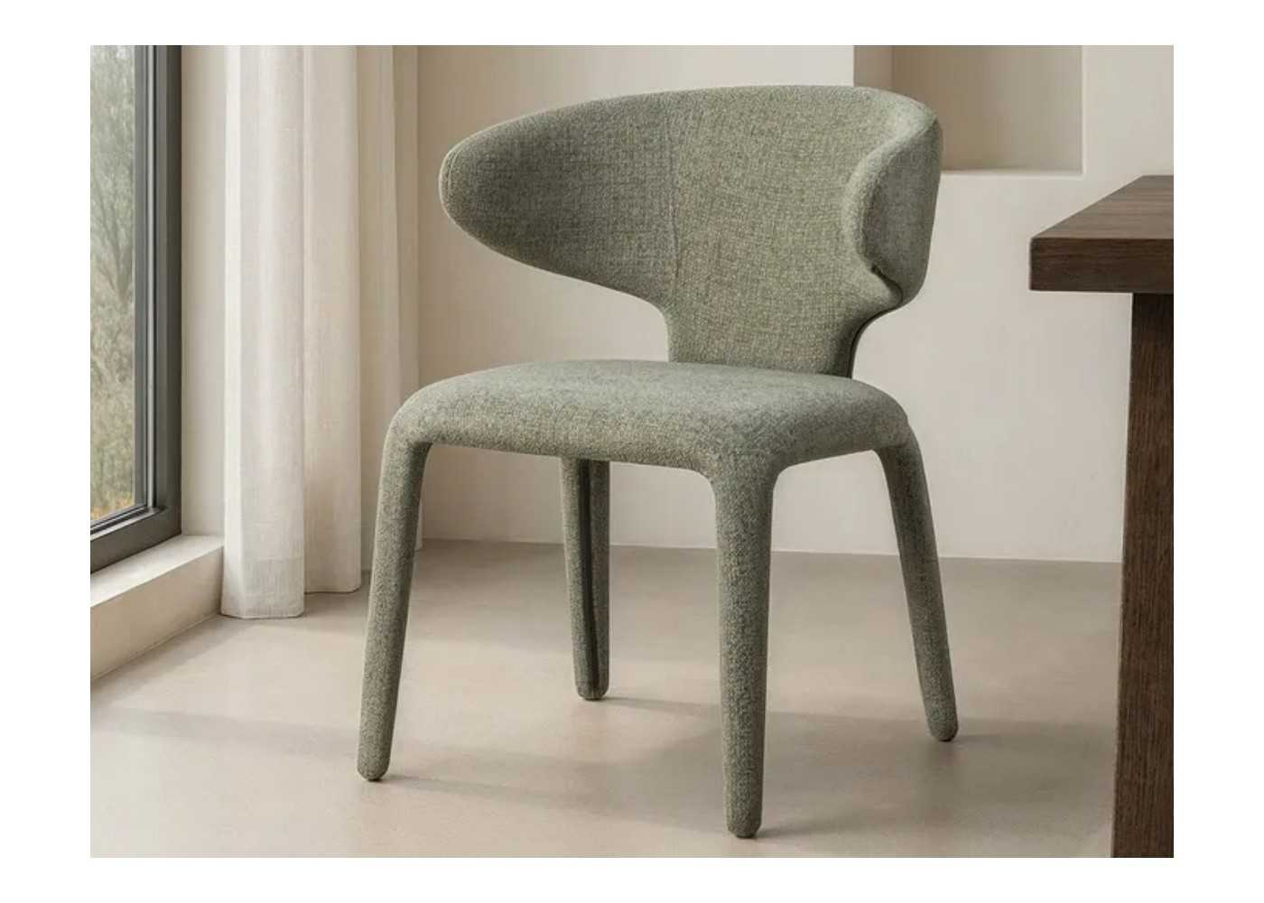 Modern design chair fully upholstered in durable, high-quality, 310g/m2 green heather fabric.