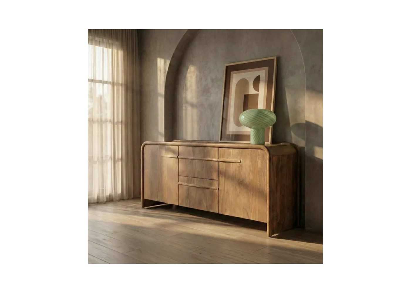 The rounded corners of this sideboard provide an impeccable and very sophisticated finish that can be integrated into both modern and rustic décor.