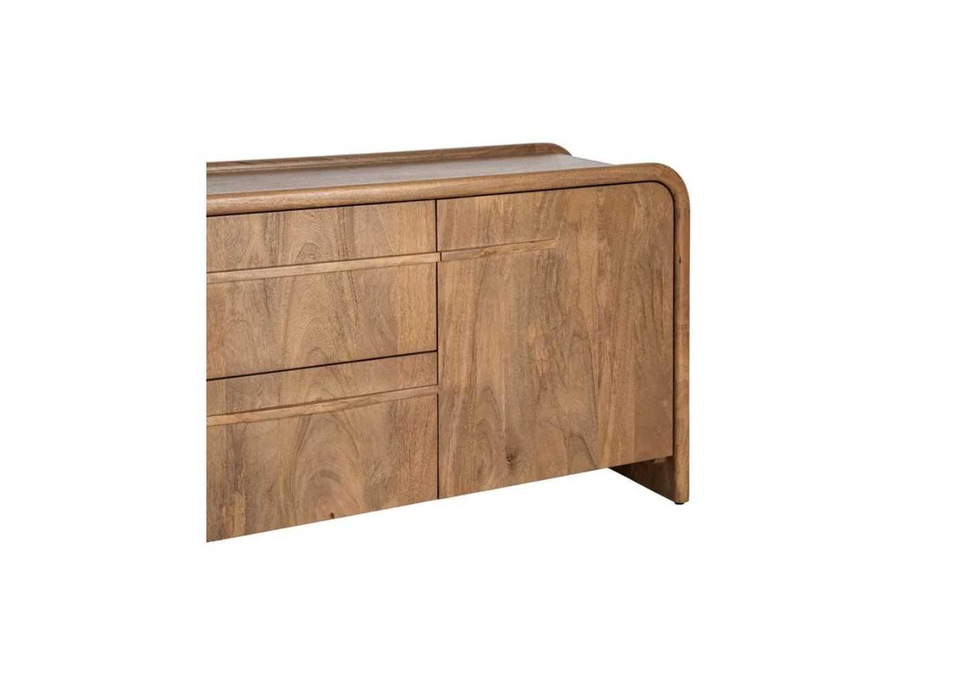 Rounded sideboard made of solid mango wood with drawers - AGAETE
