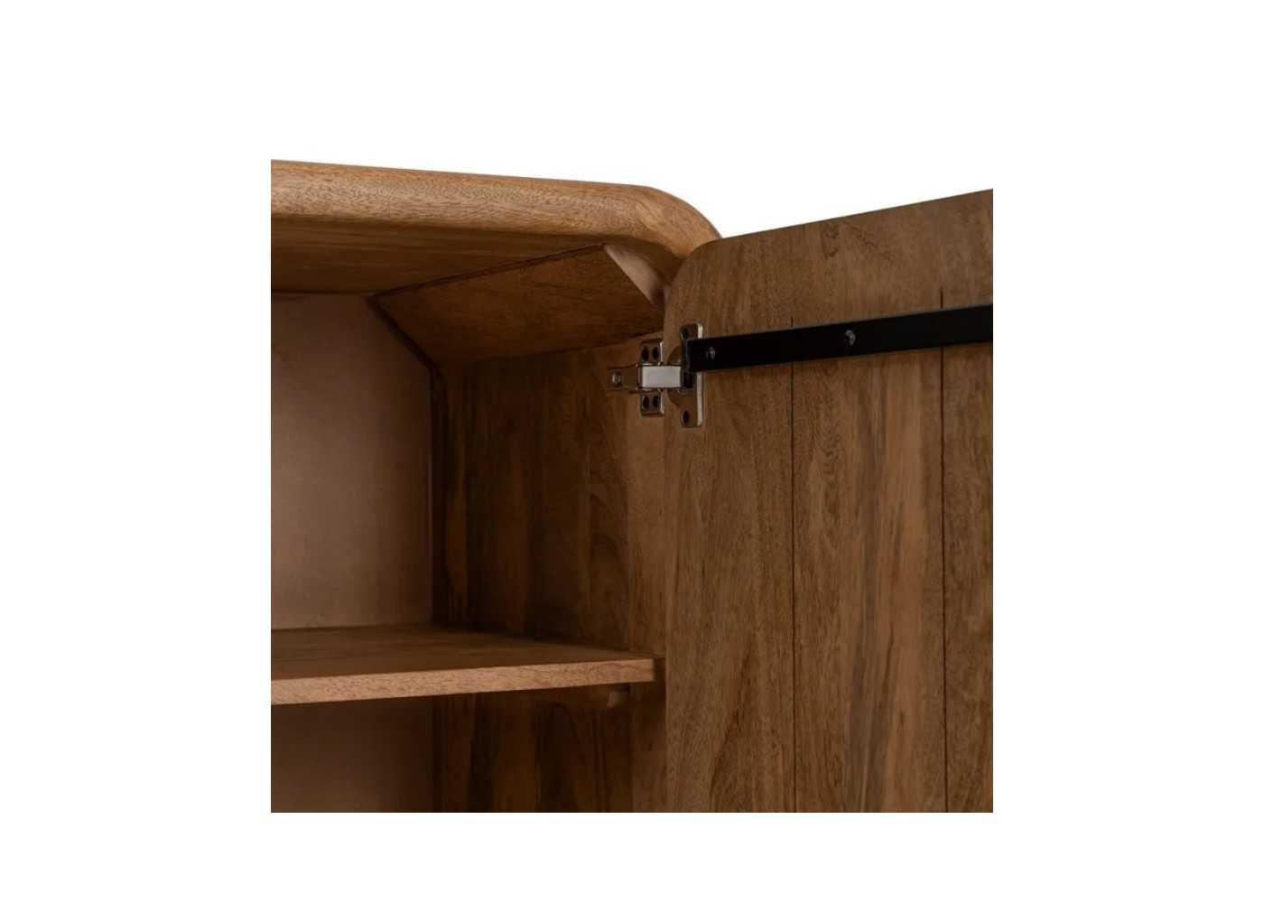 Rounded sideboard made of solid mango wood with two central drawers, two side doors and a shelf inside.