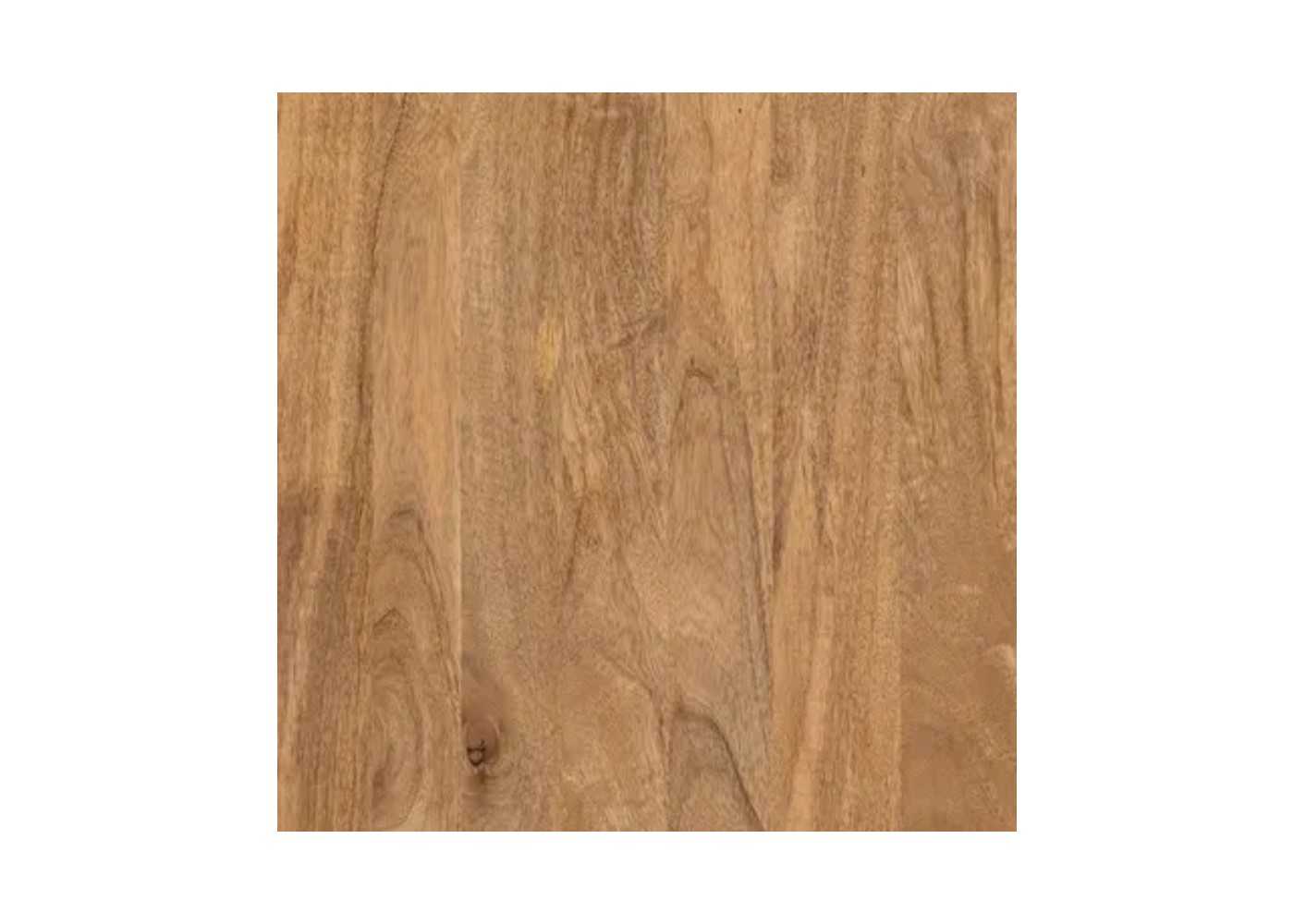 Made of solid mango wood, it has two deep drawers and two side storage spaces with a central shelf.