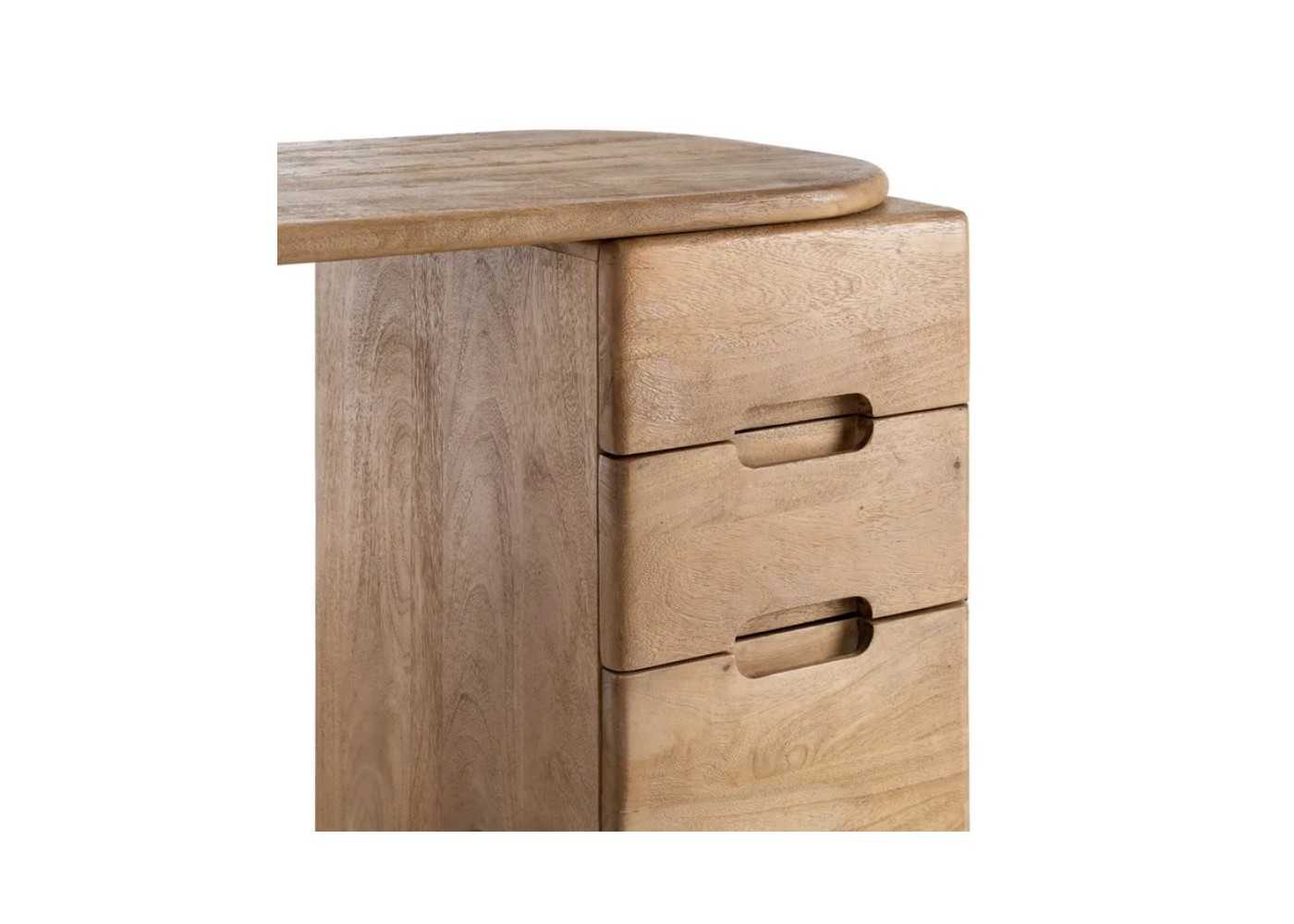 Original and practical desk with retro, rounded lines, made from solid natural-coloured mango wood.