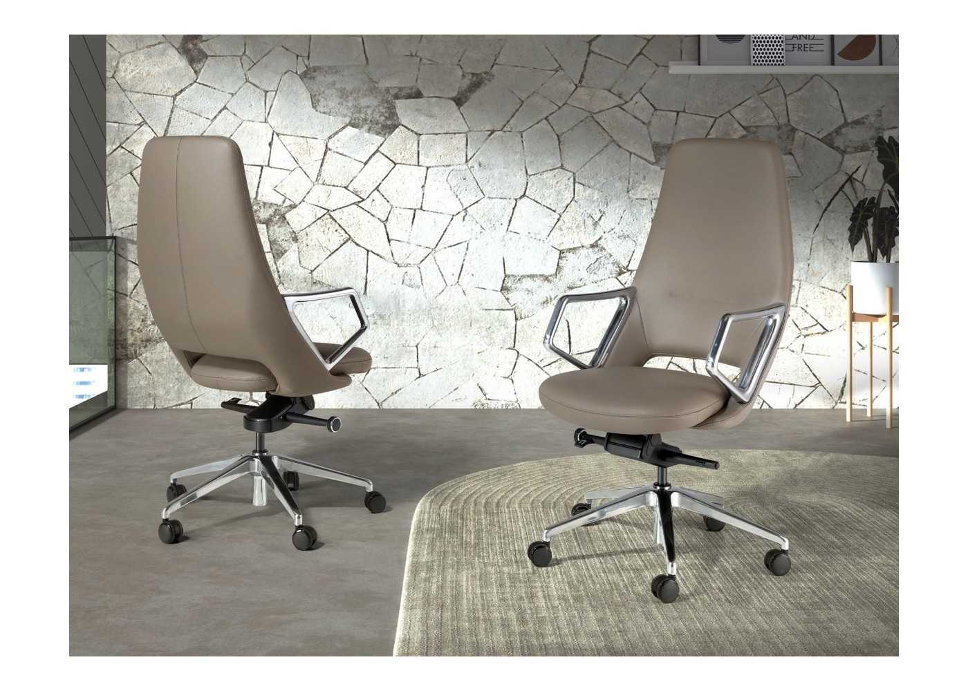 Elegant, functional, ergonomic and innovative swivel office chair with armrests and a modern design.