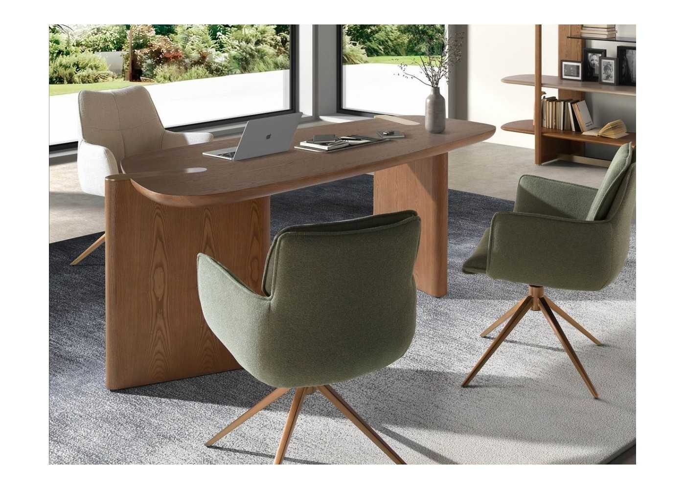 Integrated legs with an original design and polished stainless steel details in a gold finish add a distinctive and exclusive touch to your workspace.