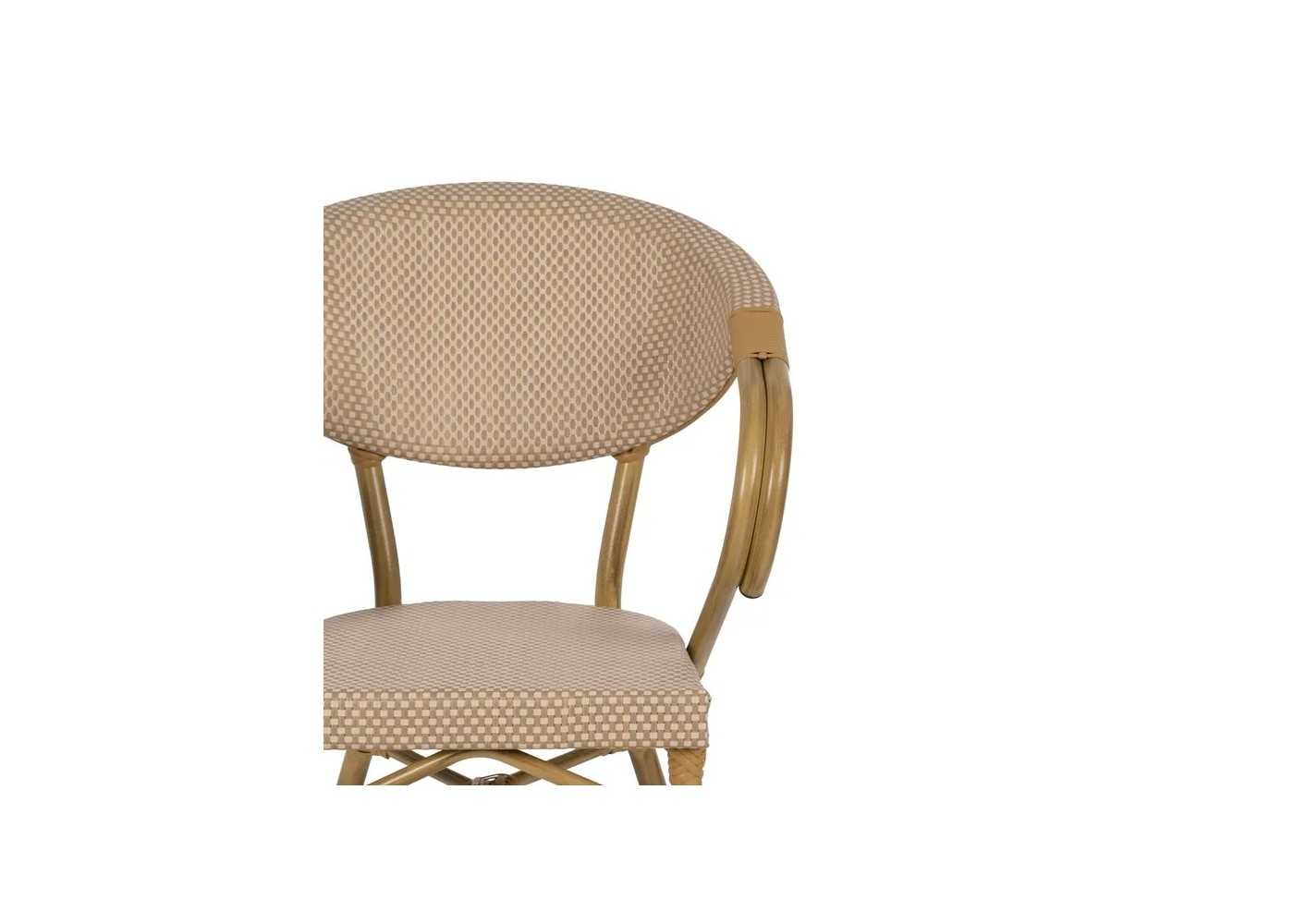 Outdoor chair with armrests made of aluminium with seat and backrest in beige-coloured textilene.