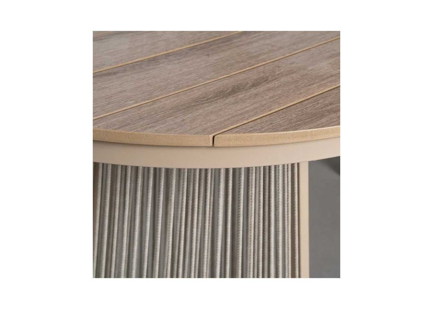 Original, practical and functional designer dining table with lacquered steel bases with PE rattan and polywood table top, perfect for outdoor use.