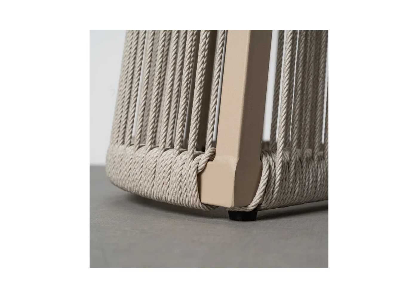 Original legs with epoxy lacquered steel structure for outdoor use in natural colour and high-strength, maintenance-free PE rattan.