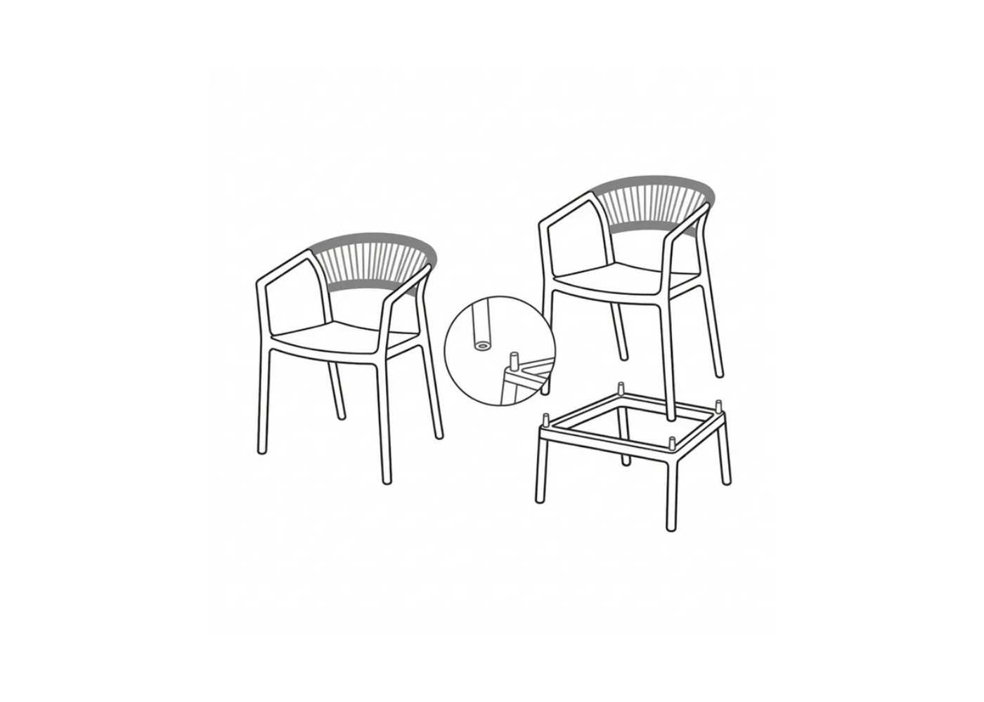 Elegant garden stool/chair made of beige-coloured polypropylene with an original backrest made of natural-coloured polyethylene rope.