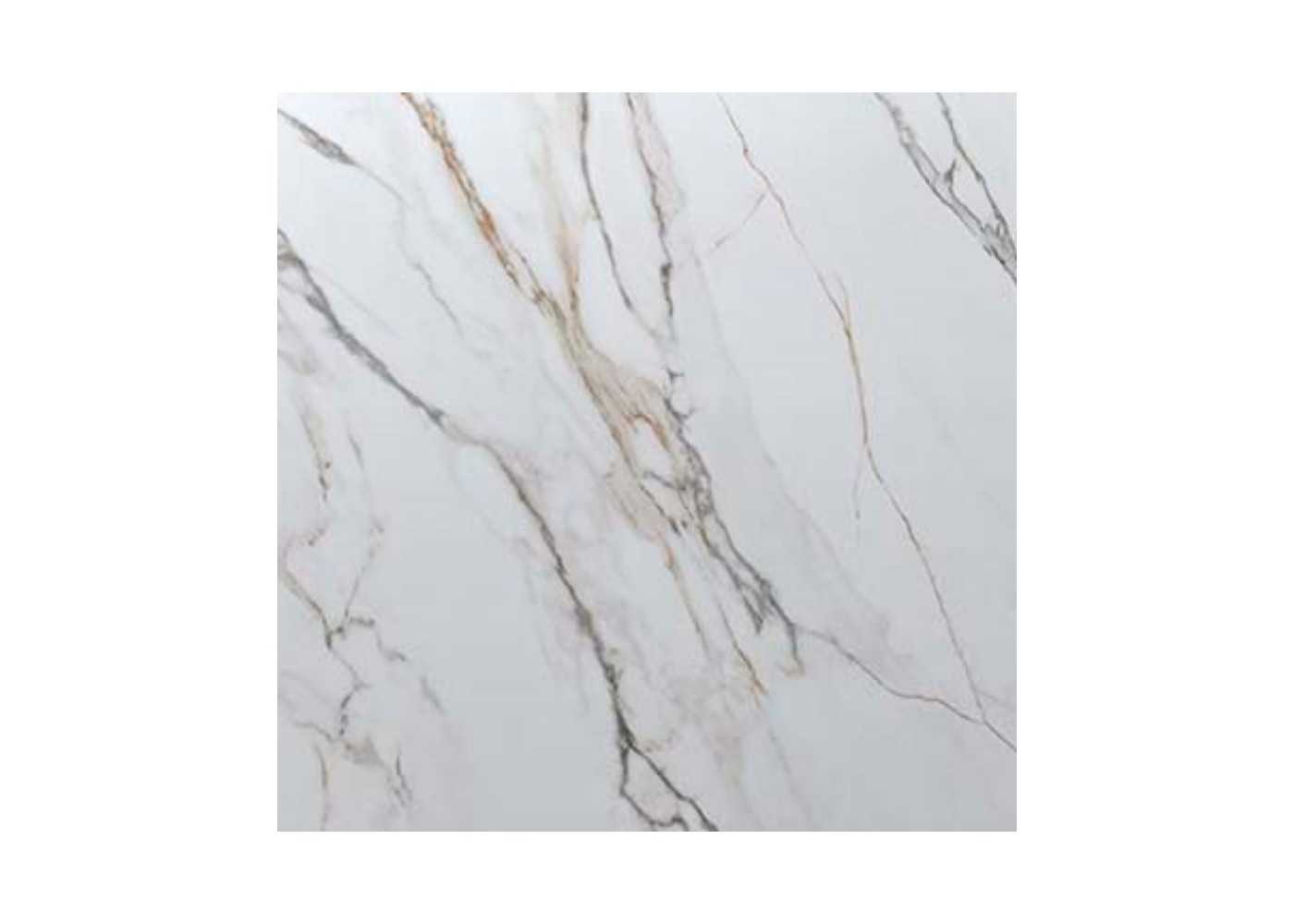 Original dining table with ceramic top in white with grey and brown veins.