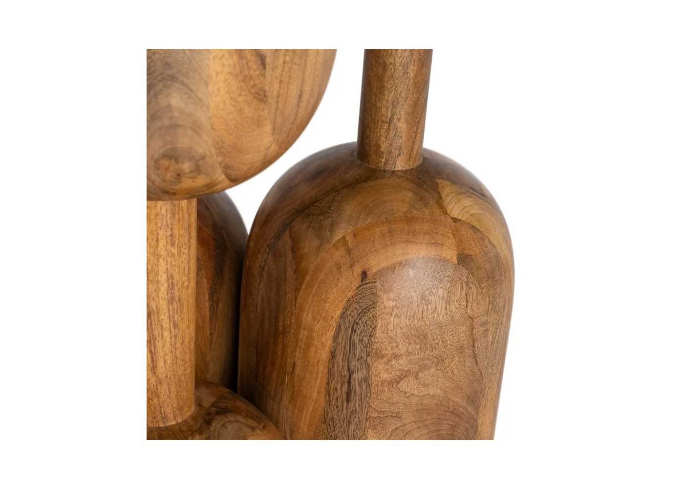 A unique, sculptural totem-style base made from solid wood, featuring different volumes that will make it the centre of attention. A piece suited to any setting.
