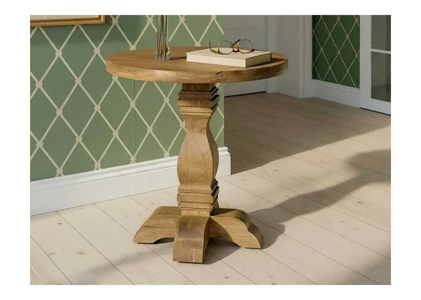 Elegant side table, handcrafted in solid mango wood in a natural walnut color.
