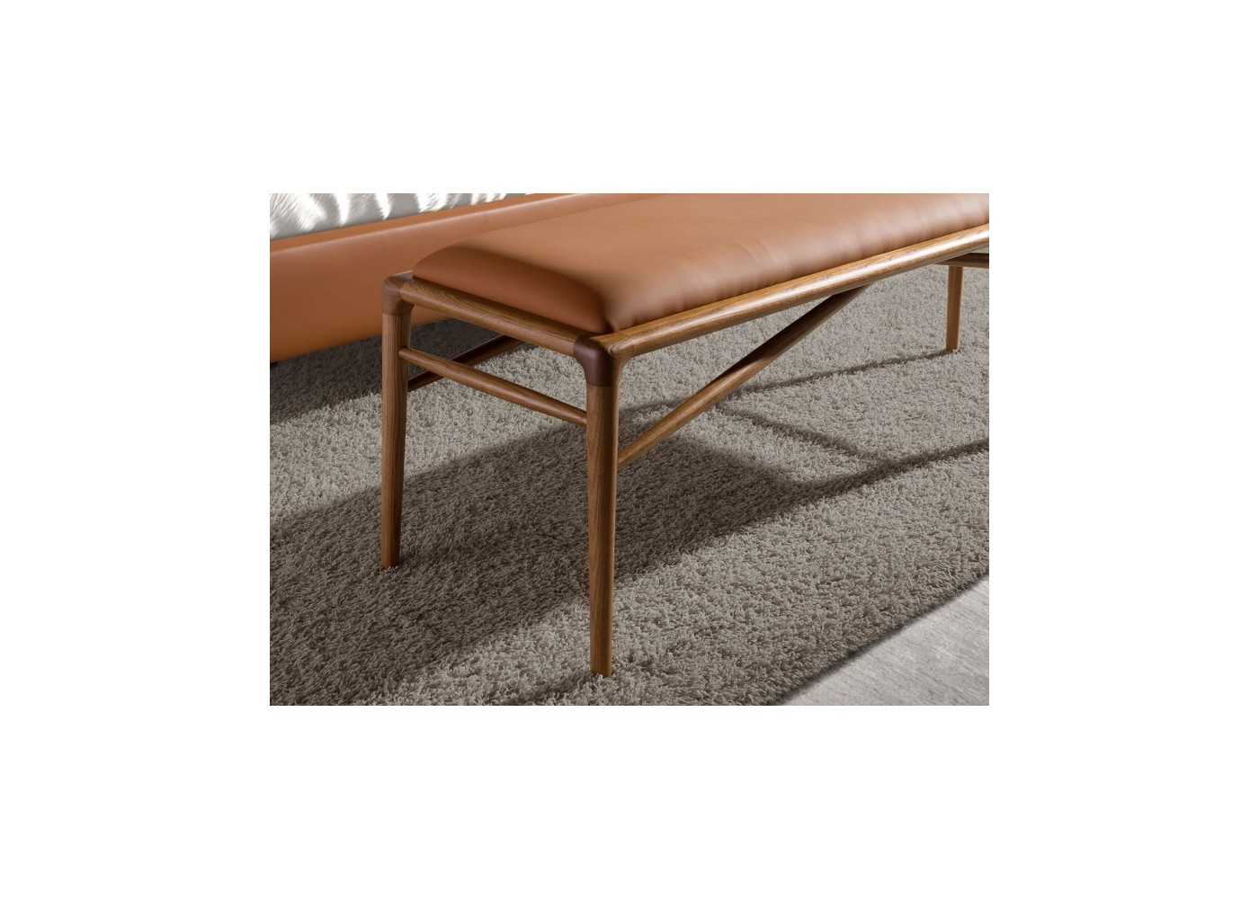 Upholstered stool in synthetic leather with walnut leg structure - ENMA