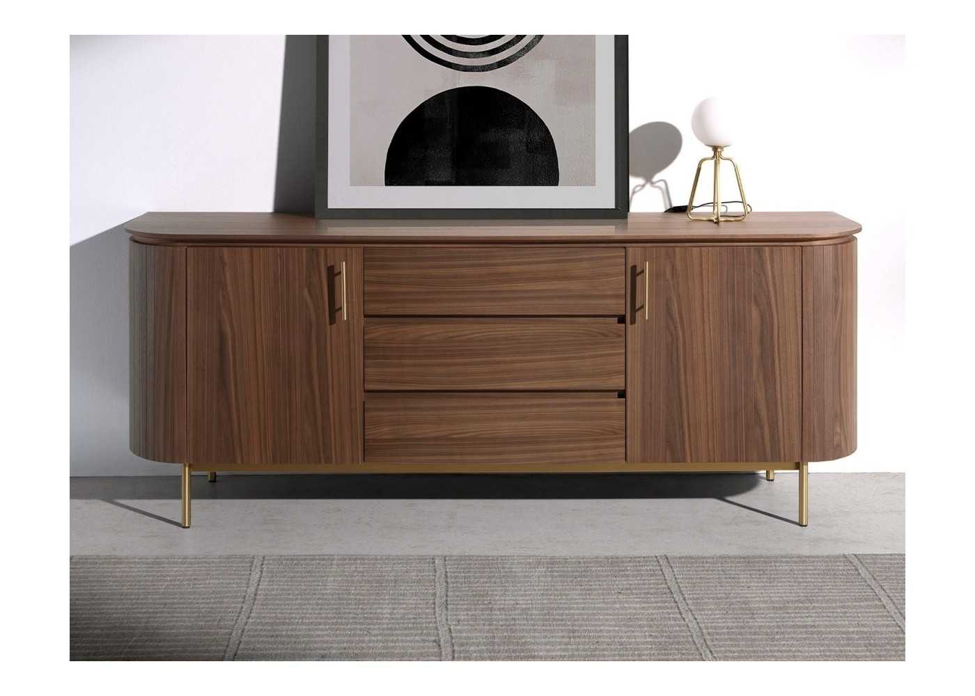 Designer walnut sideboard with gold stainless steel base - MANDRA