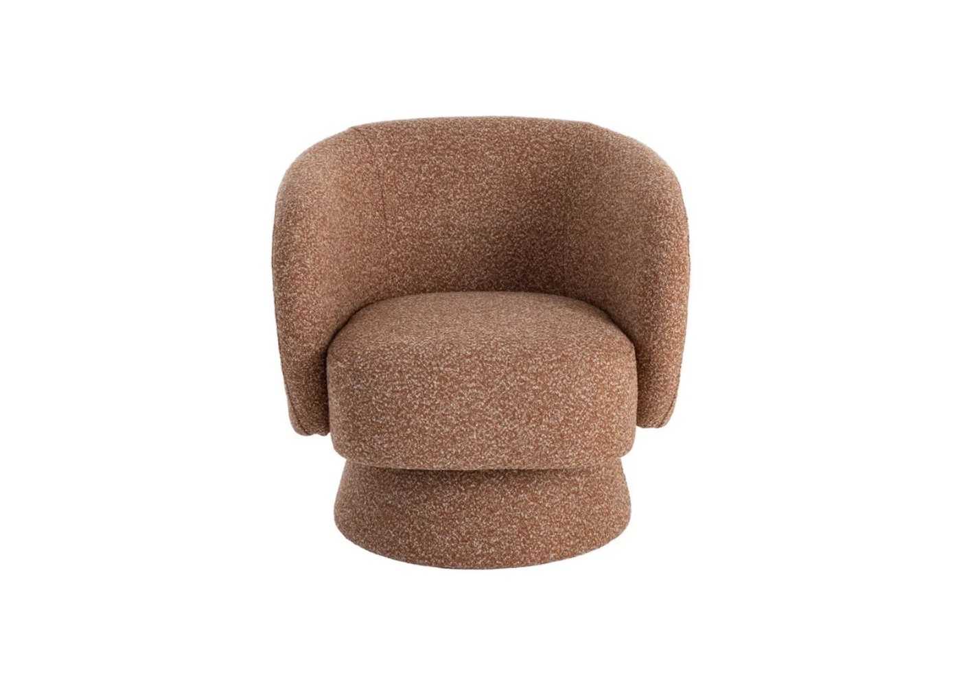 Original 360° swivel armchair with a modern design, featuring armrests and rounded, enveloping lines.