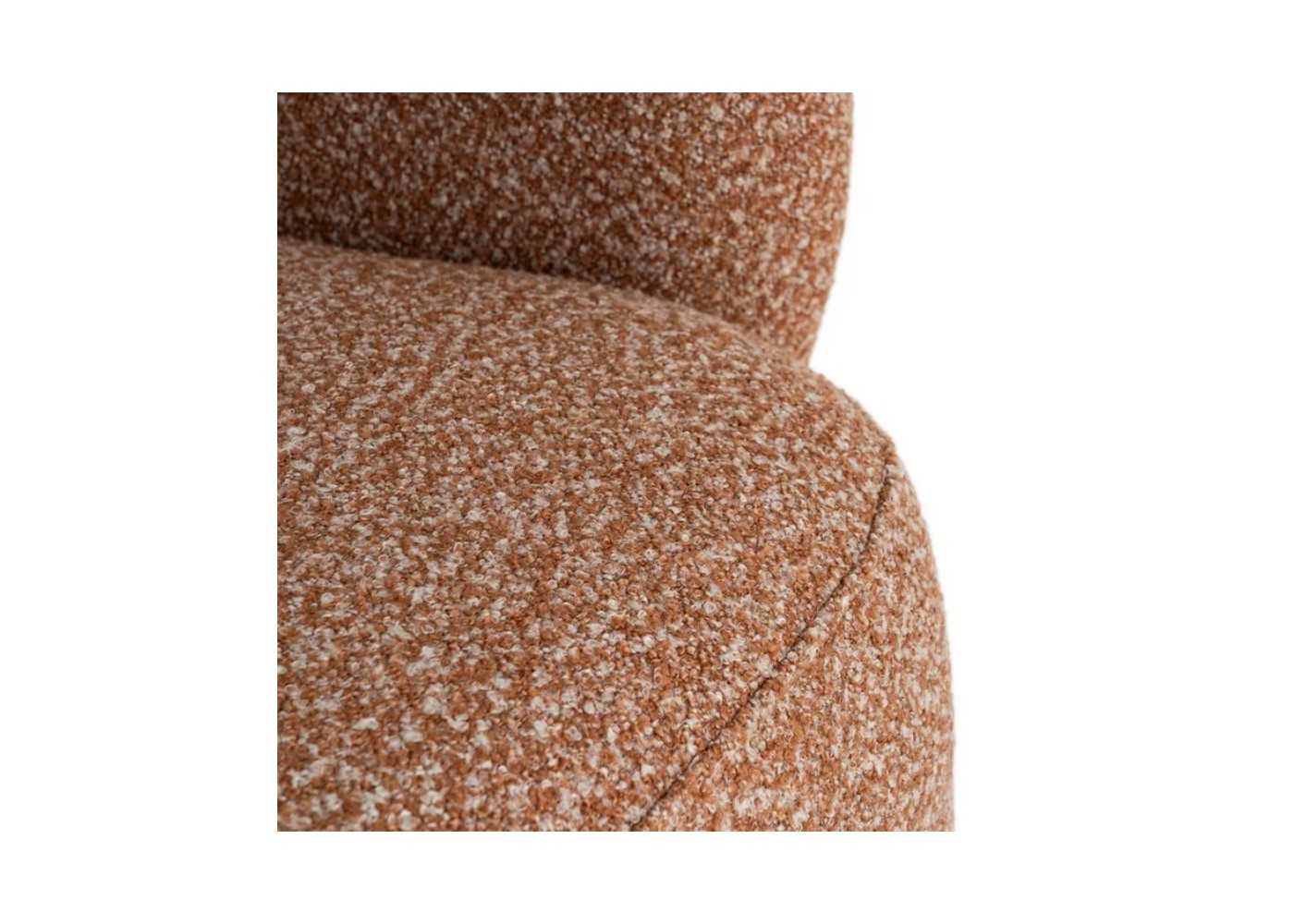 Original modern design swivel armchair upholstered in salmon-colored mottled fabric.