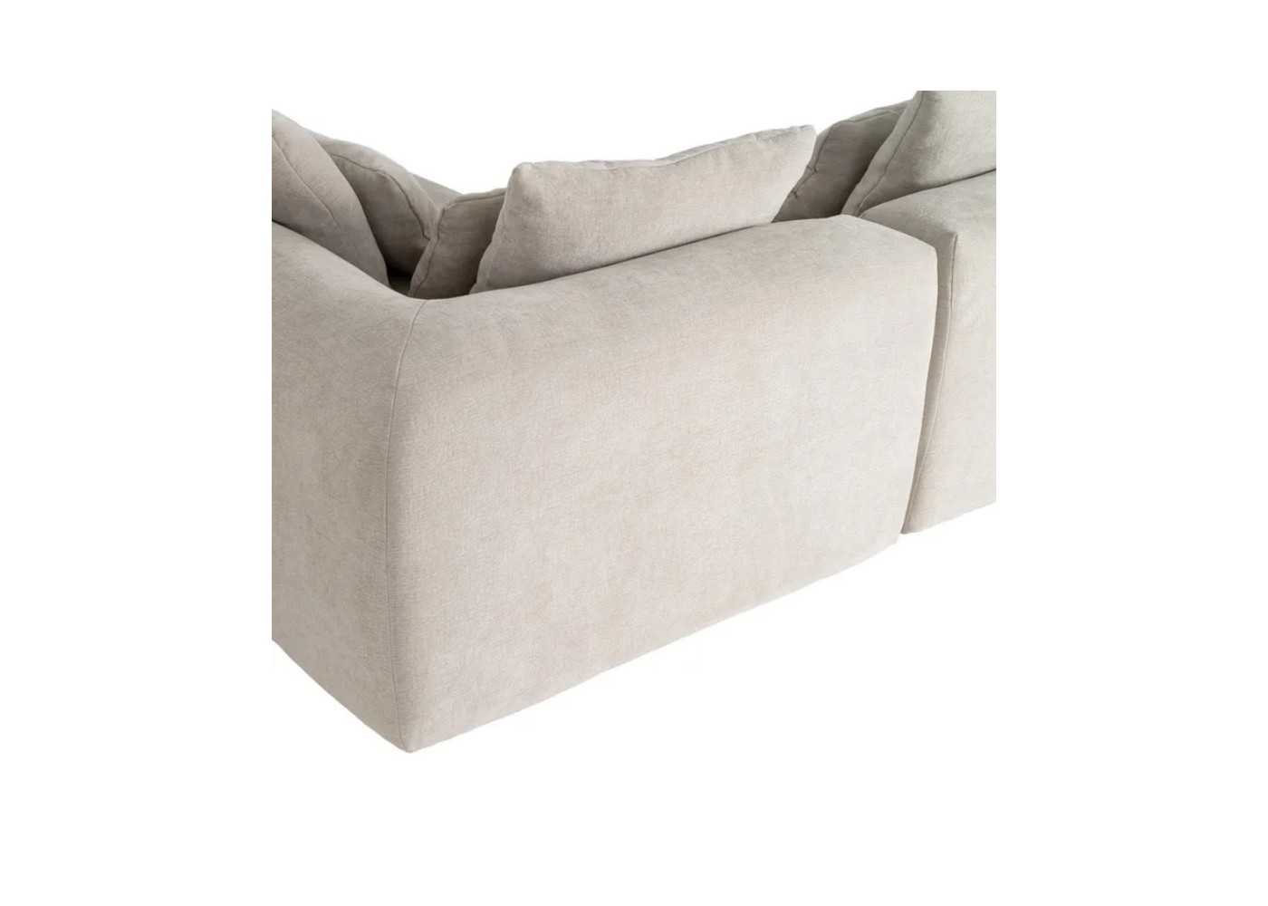 Handcrafted upholstery in durable cream-coloured velvet fabric with a composition of 97% polyester and 3% linen, offering a soft and warm texture and easy maintenance.