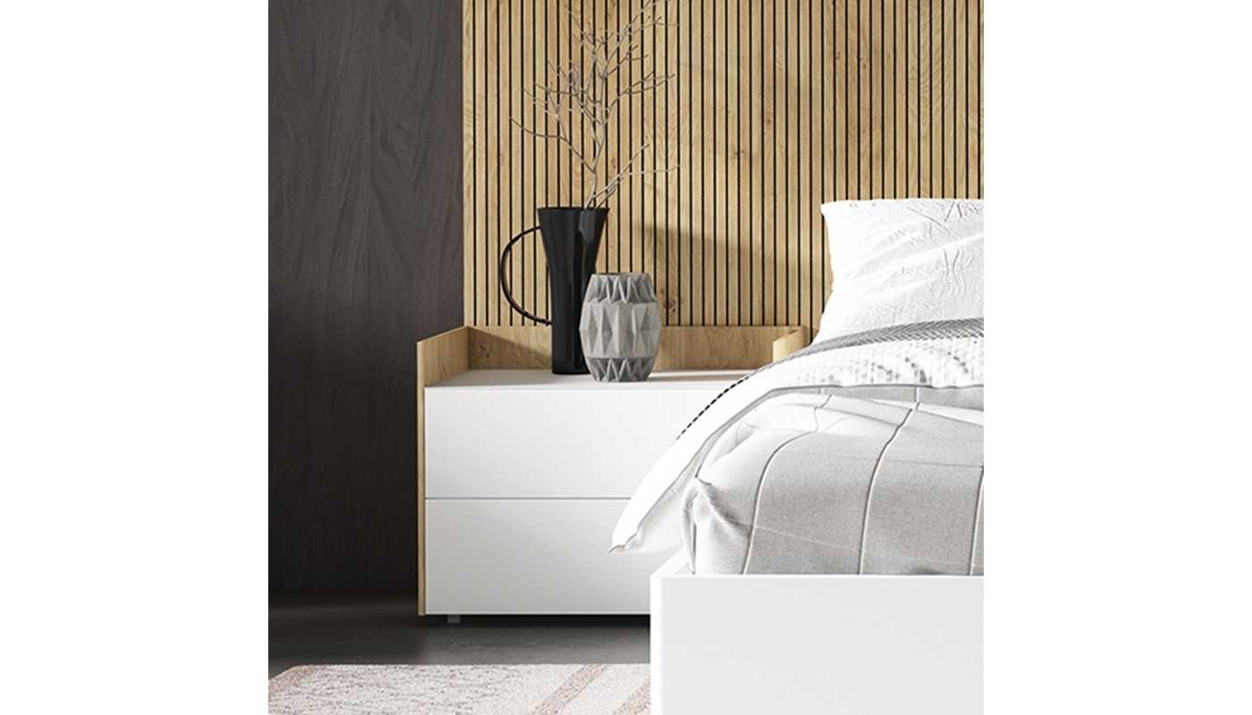 Mesita de noche de 2 cajones en madera y lacados - BERGEN