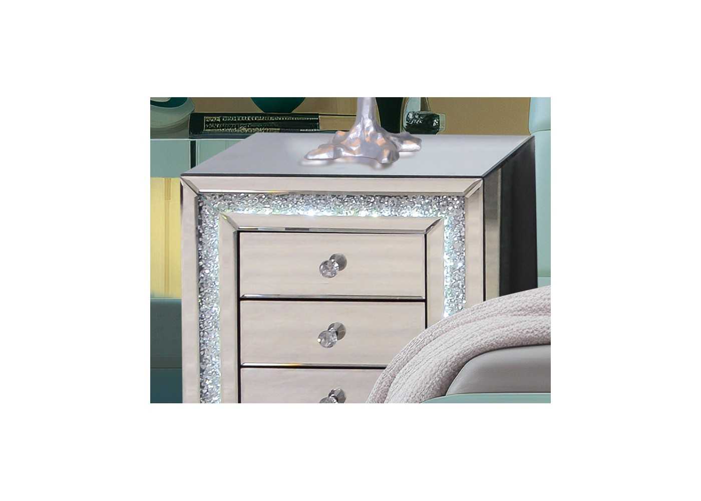 Mesita de noche de 3 cajones forrada de espejo con luz led - AALIYAH A