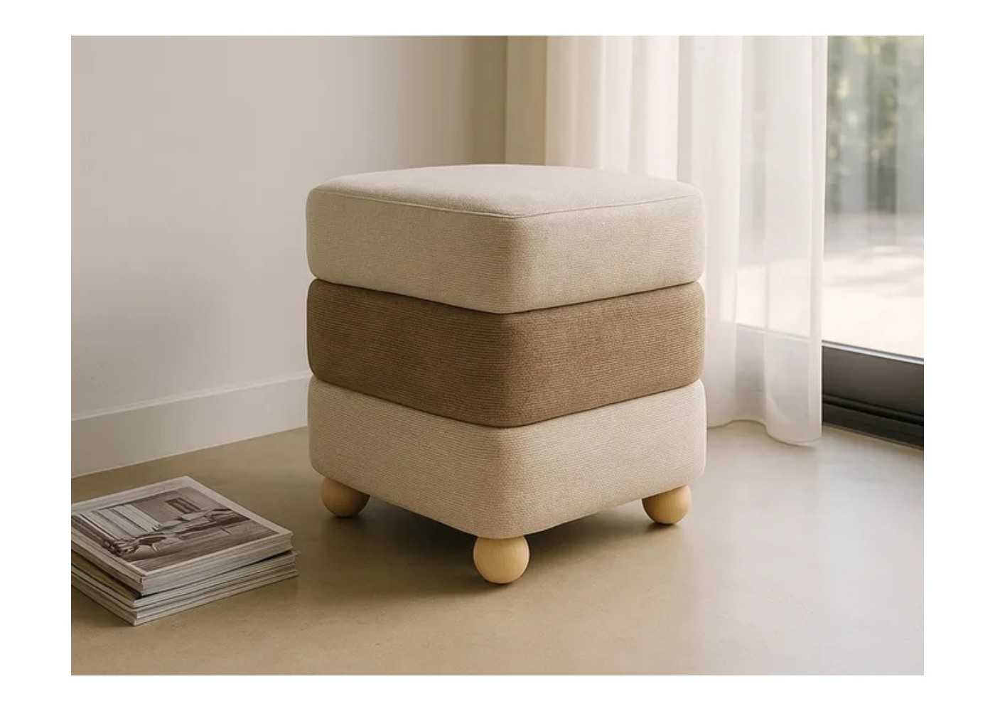 Original pouf de diseño moderno y cuadrado.