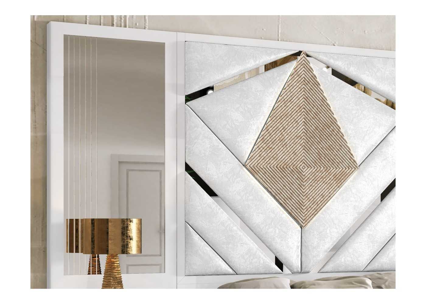 Cama completa con cabecero XXL tapizado y lacado de diseño moderno - GINETTE