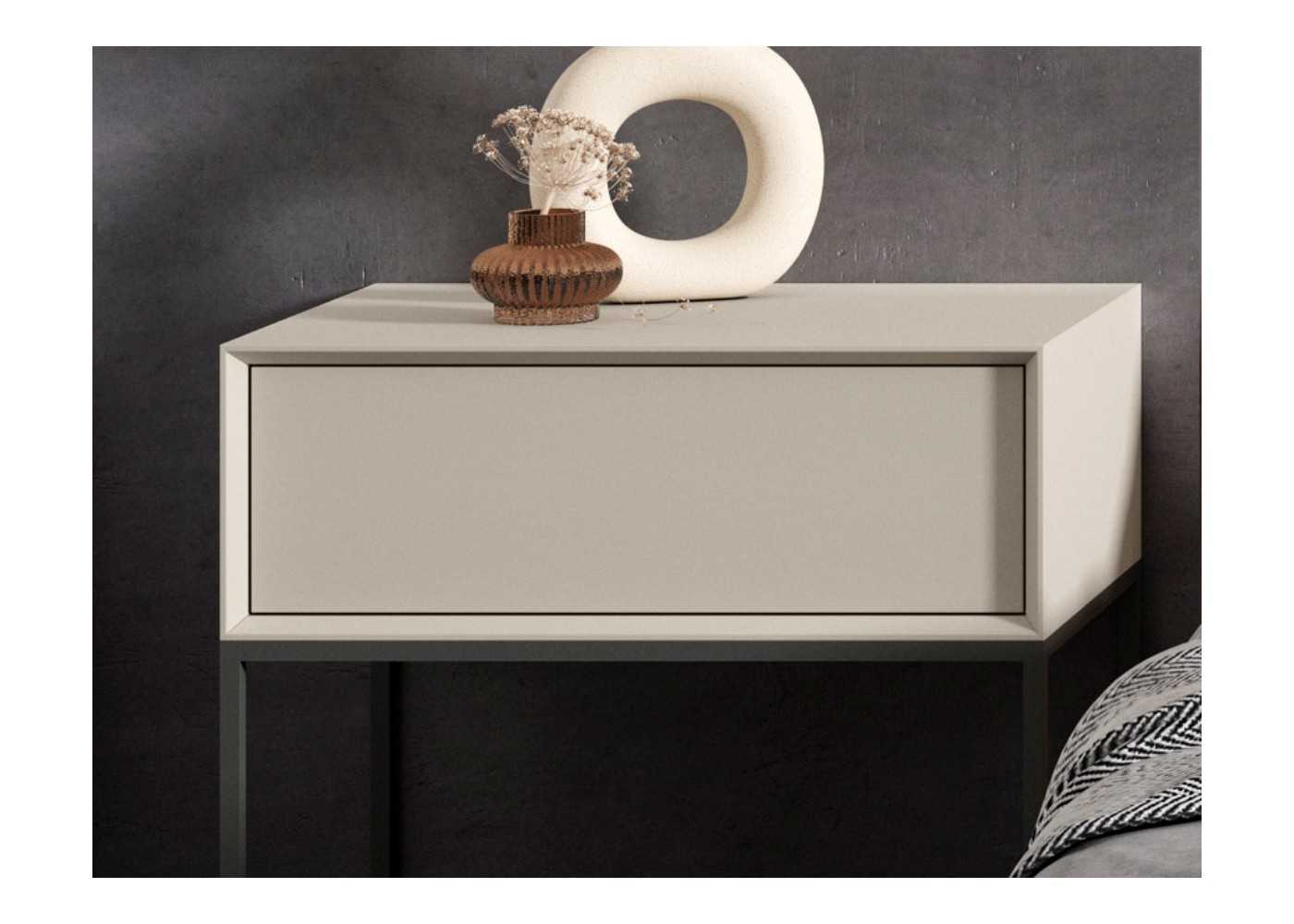 Mesita de noche de 1 cajón lacada y base de acero lacado - ABRANO