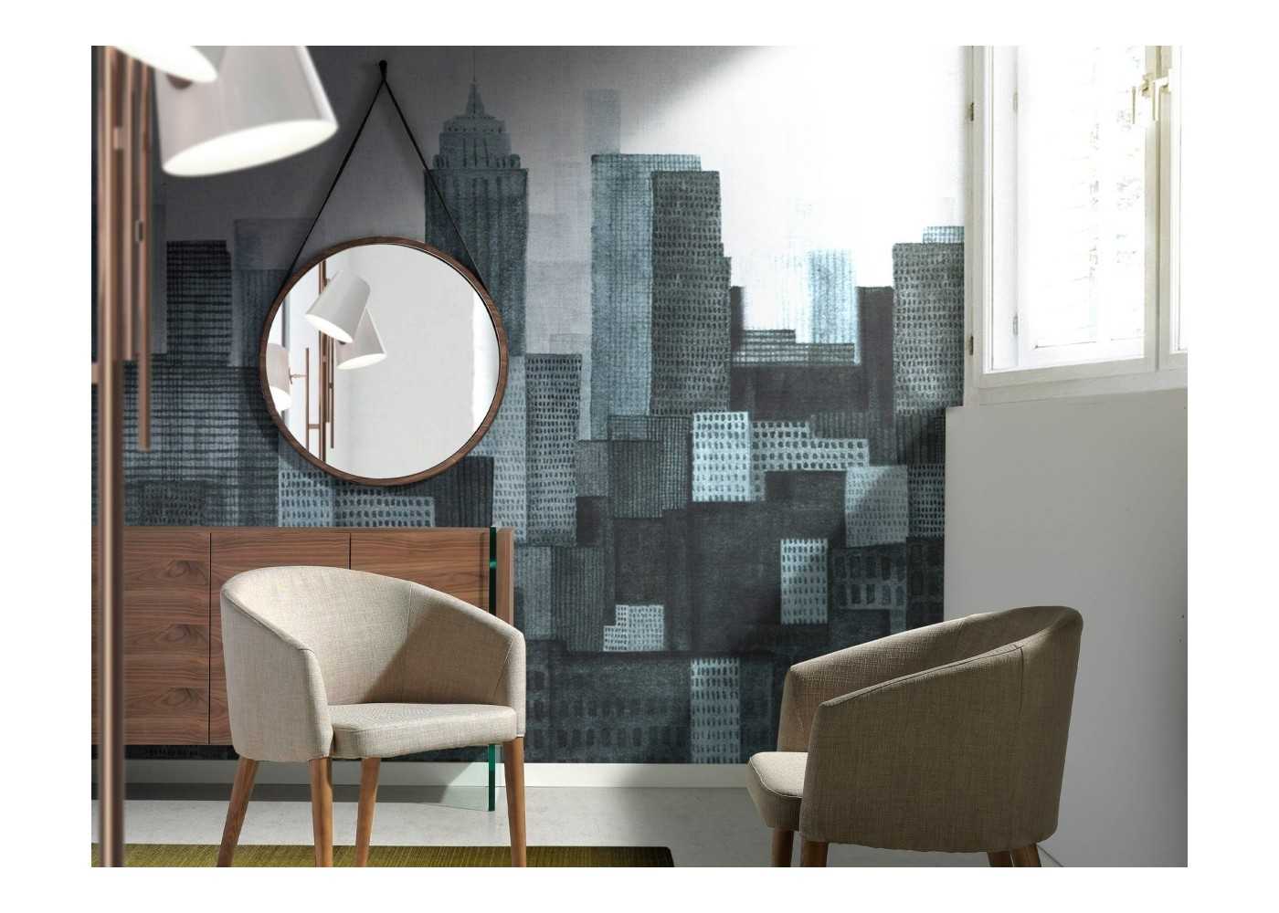 Espejo redondo de diseño moderno con marco en madera de nogal.