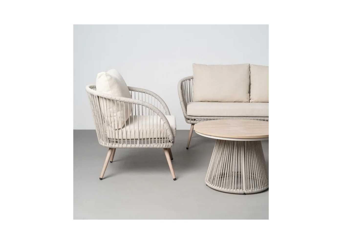 Conjunto de jardín en acero y ratán - AARON