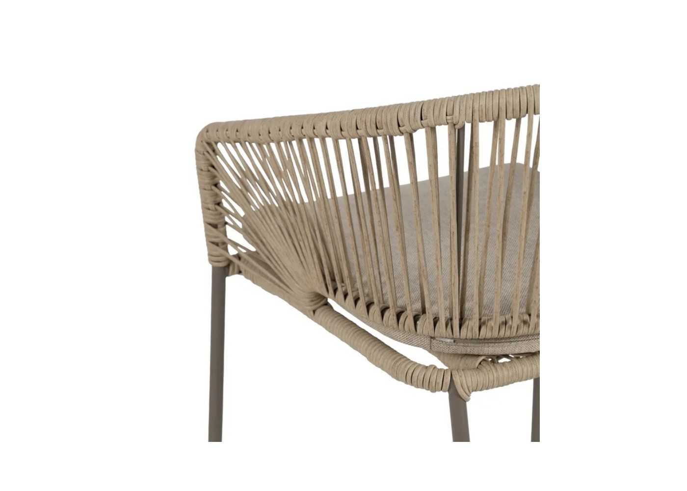 Asiento y respaldo fabricado con cordajes de polietileno en color natural de gran resistencia y durabilidad.