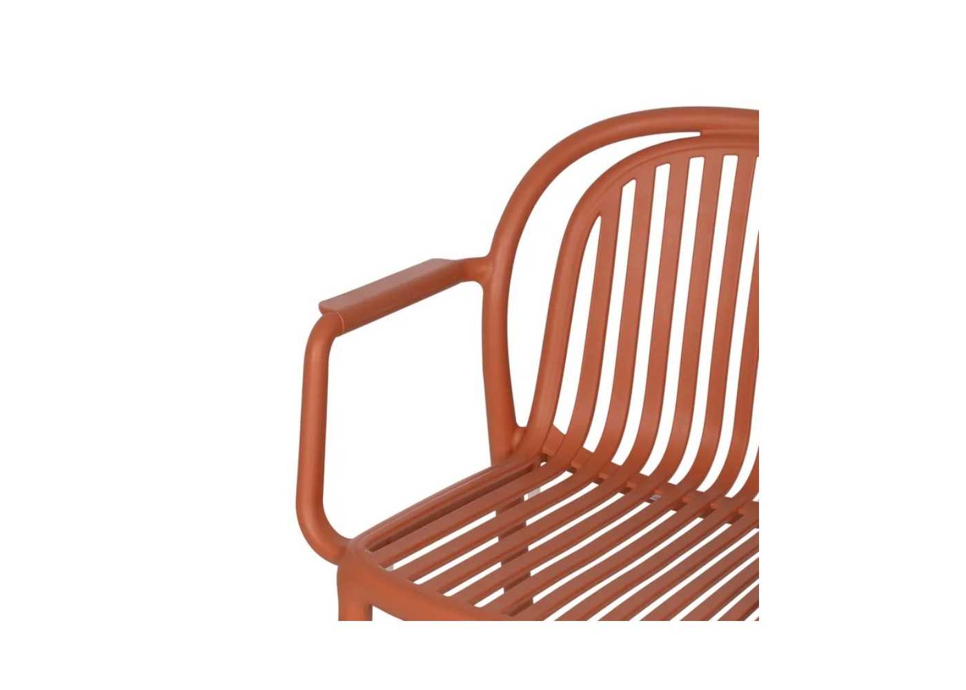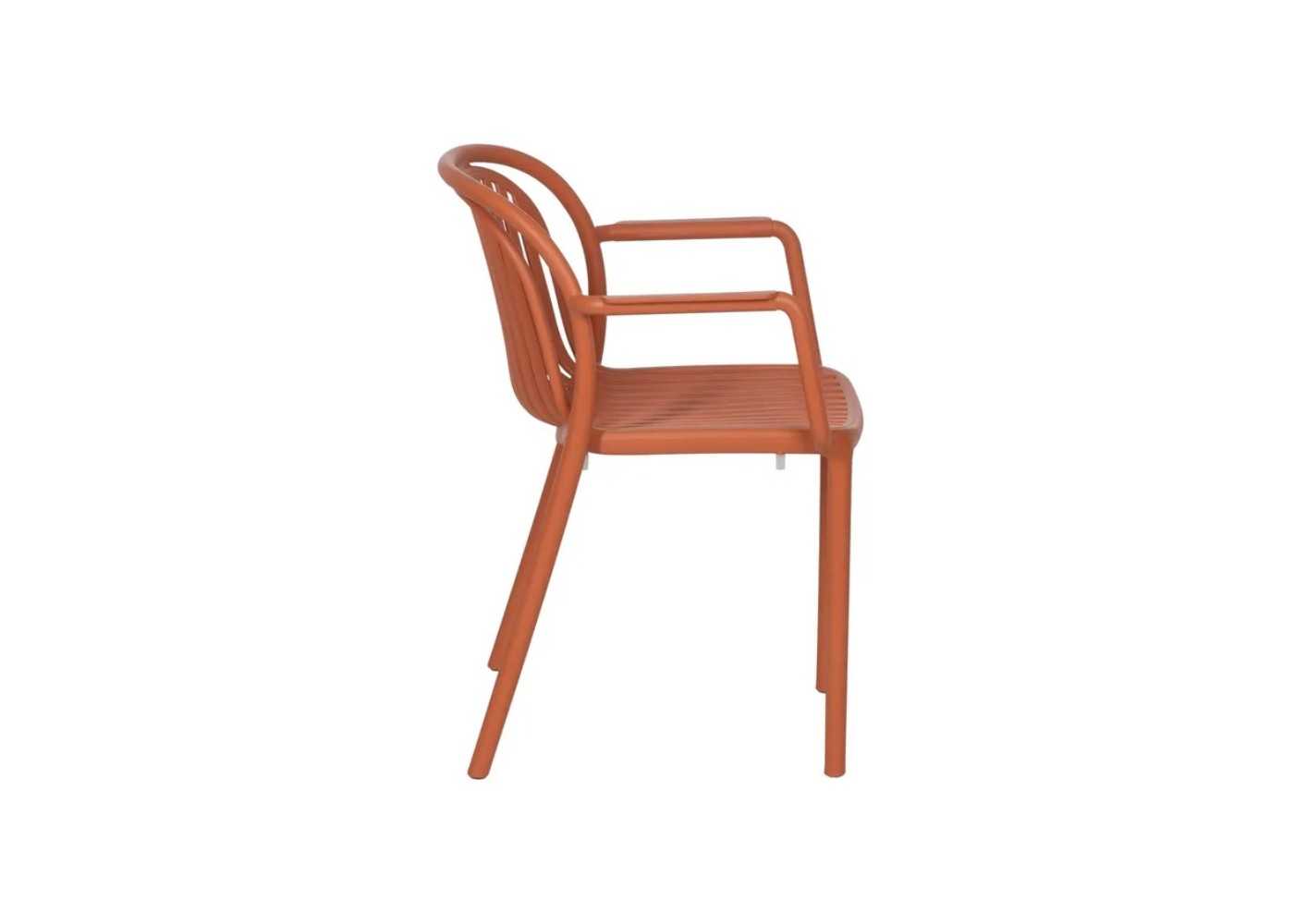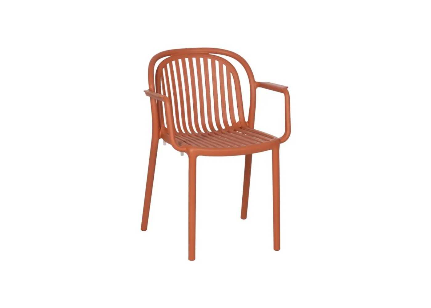 Silla para exterior con reposabrazos y apilable en color TERRACOTA.