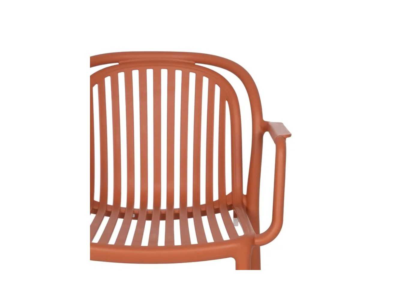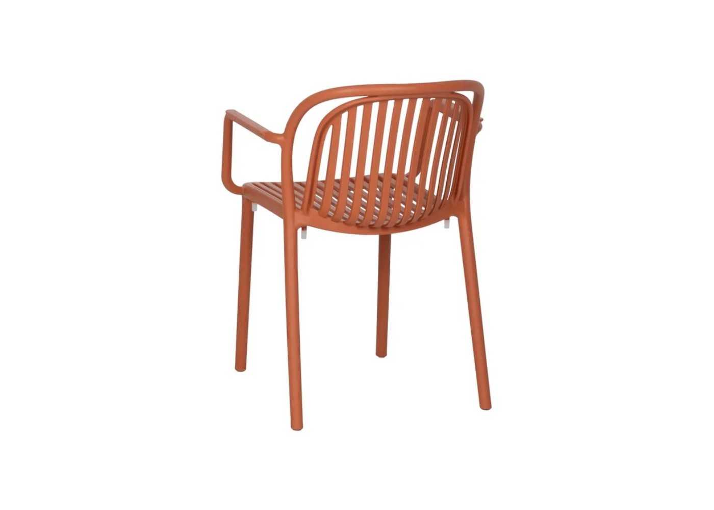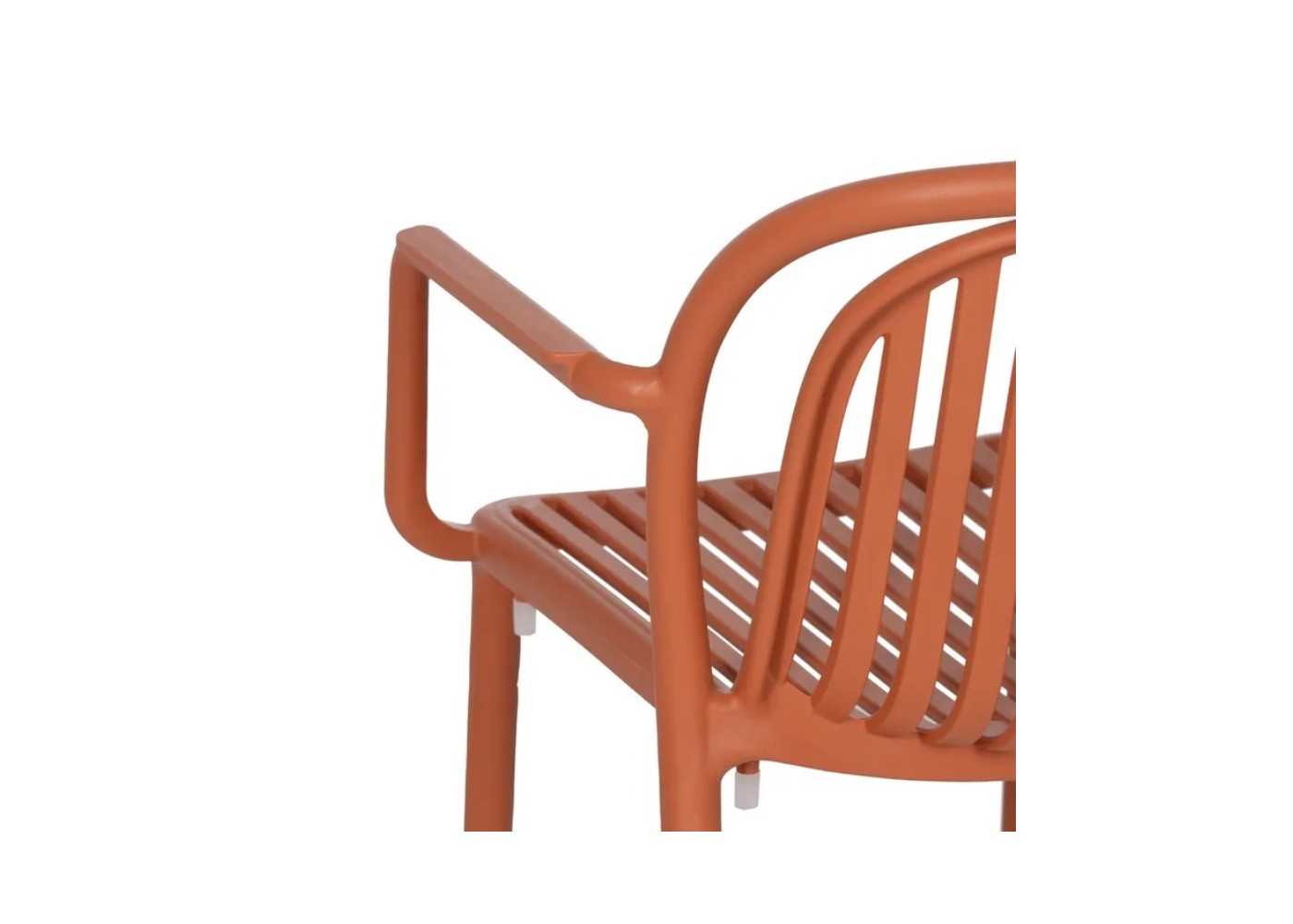 Silla para exterior con reposabrazos y apilable en color TERRACOTA.