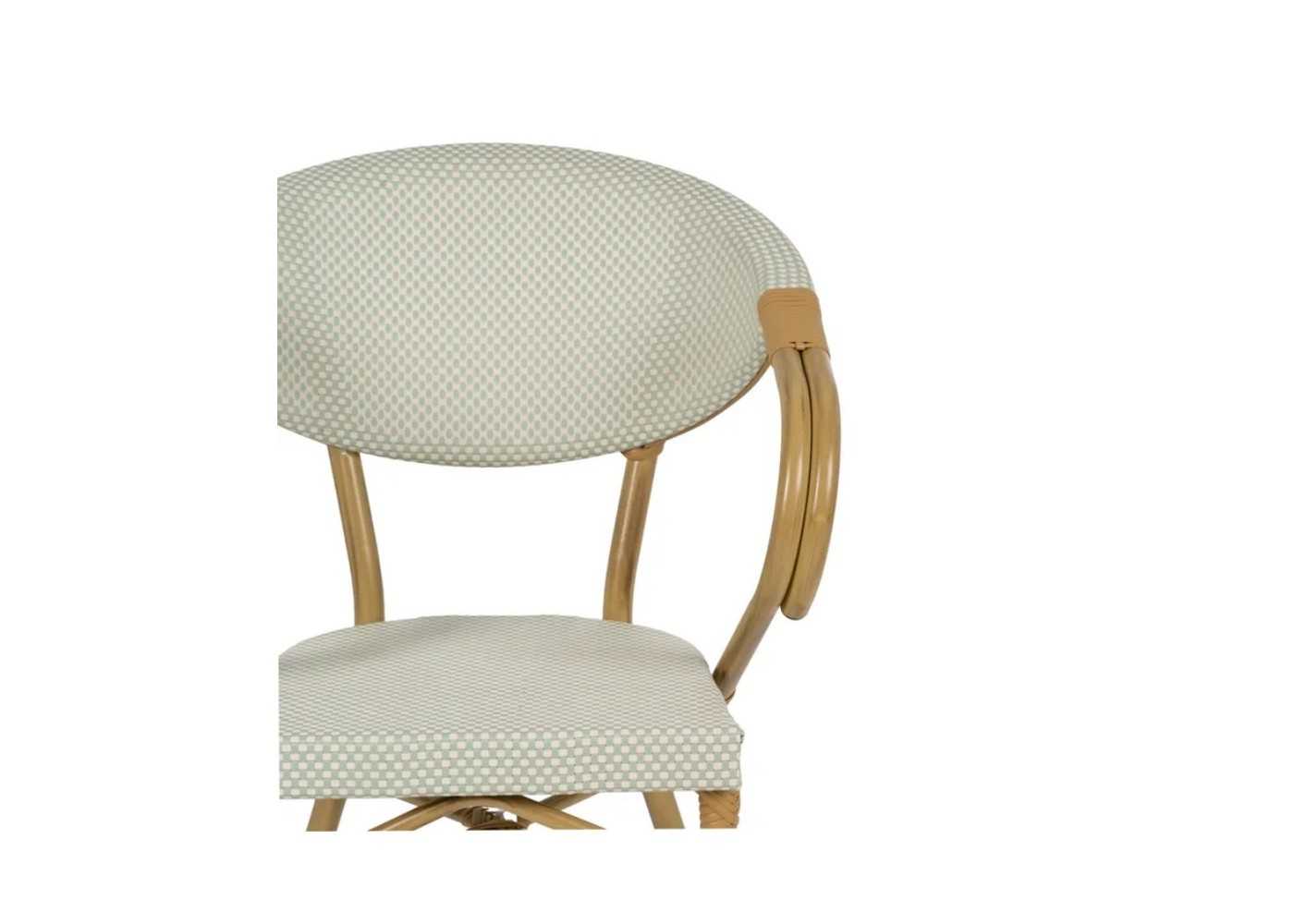 Taburete de exterior con brazos fabricada de aluminio con asiento y respaldo en textileno color aguamarina.