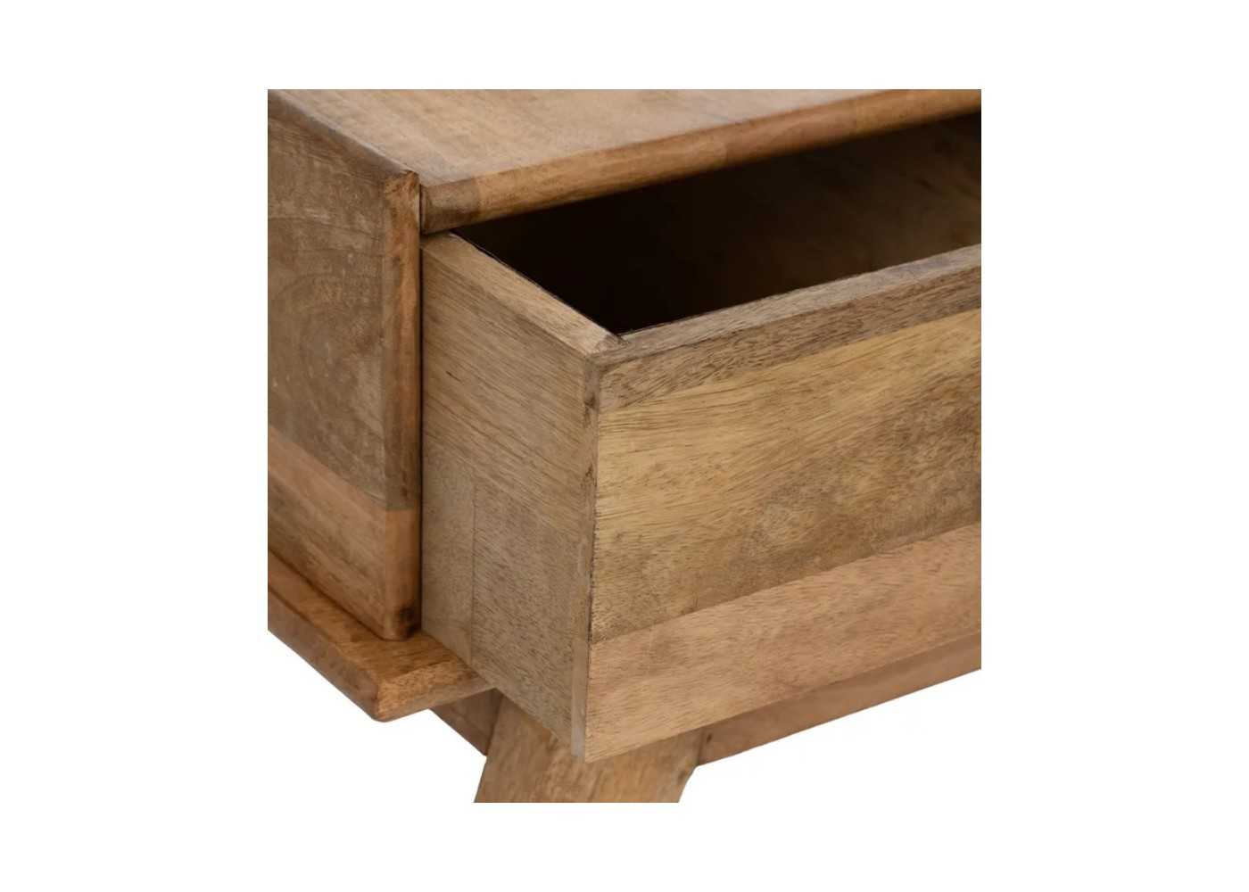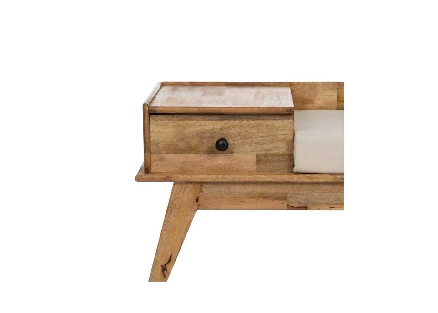 Original banqueta telefonera fabricada en madera maciza de mango en color natural.